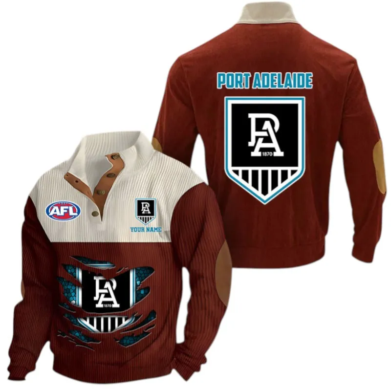 Designed with a stand-up collar instead of a traditional hood, this fan-favorite offers a fresh take on the hoodie look while still delivering the comfort and streetwear energy Port Adelaide supporters love. Stay warm and sharp without sacrificing your loyalty.