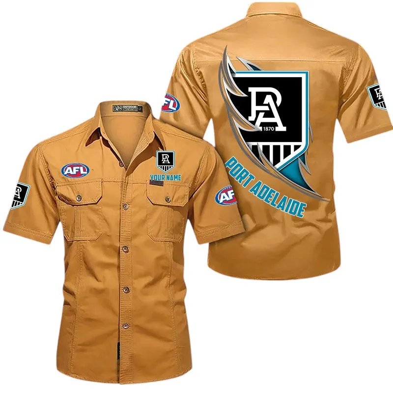 Port Adelaide Fans Gift Short Sleeved Shirt, All Over Print Shỉt For Sport Fan, Custom Name AFL155071425131 - Khaki