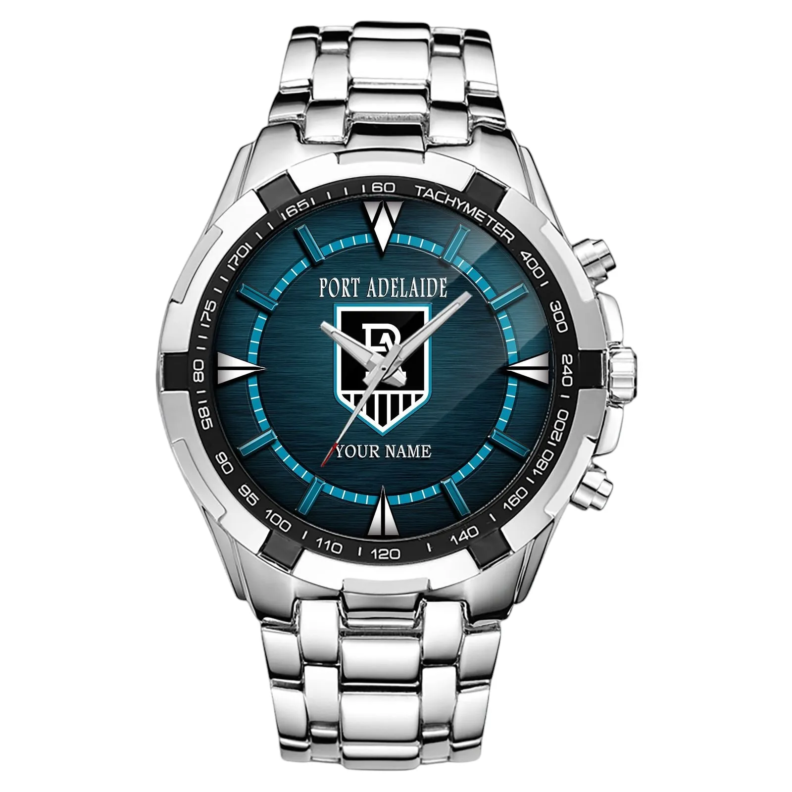 Port Adelaide Fans Gift Steel Watches, All Over Print Watches For Sport Fan, Custom Name AFL151071525135 - Silver