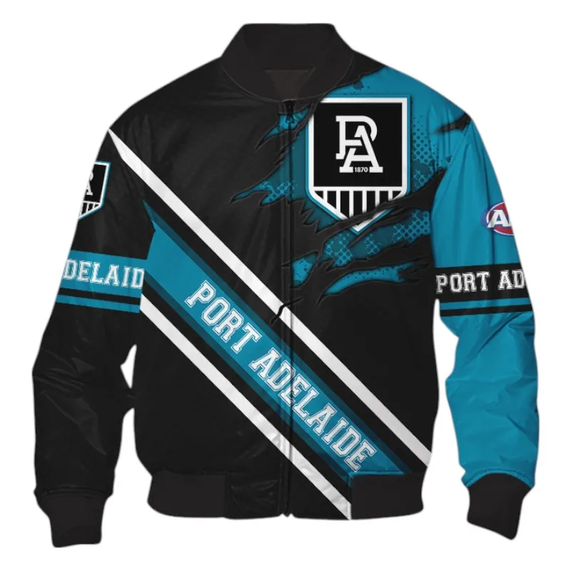 Port Adelaide Power Bomber Jacket 3D Print, All Over Print Bomber Jacket Port Adelaide Power AFL132062125456