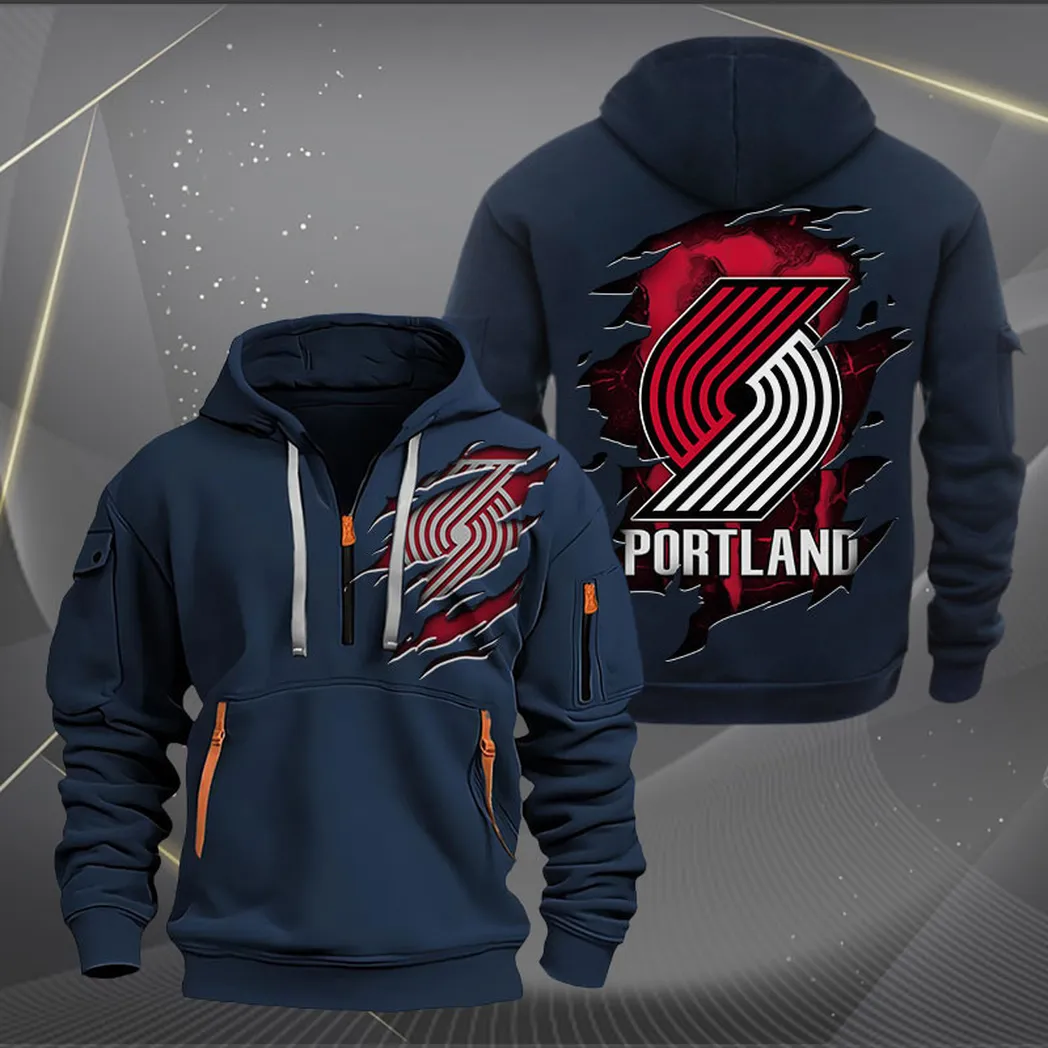 Portland Trail Blazers Hoodie Half Zipper NBA56180125036 – Gift For Fan Portland Trail Blazers – Blue