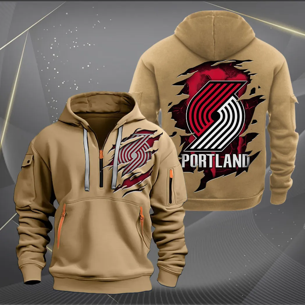 Portland Trail Blazers Hoodie Half Zipper NBA56180125036 – Gift For Fan Portland Trail Blazers – Khaki