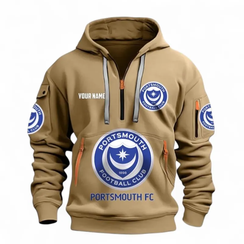 Portsmouth Fans Gift Hoodie Half Zipper, All Over Print Hoodie Half Zipper For Sport Fan, Custom Name EPL116073125012-Khaki