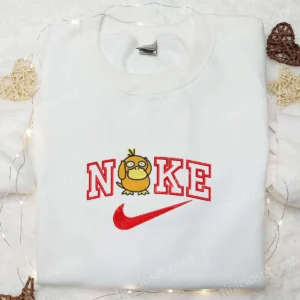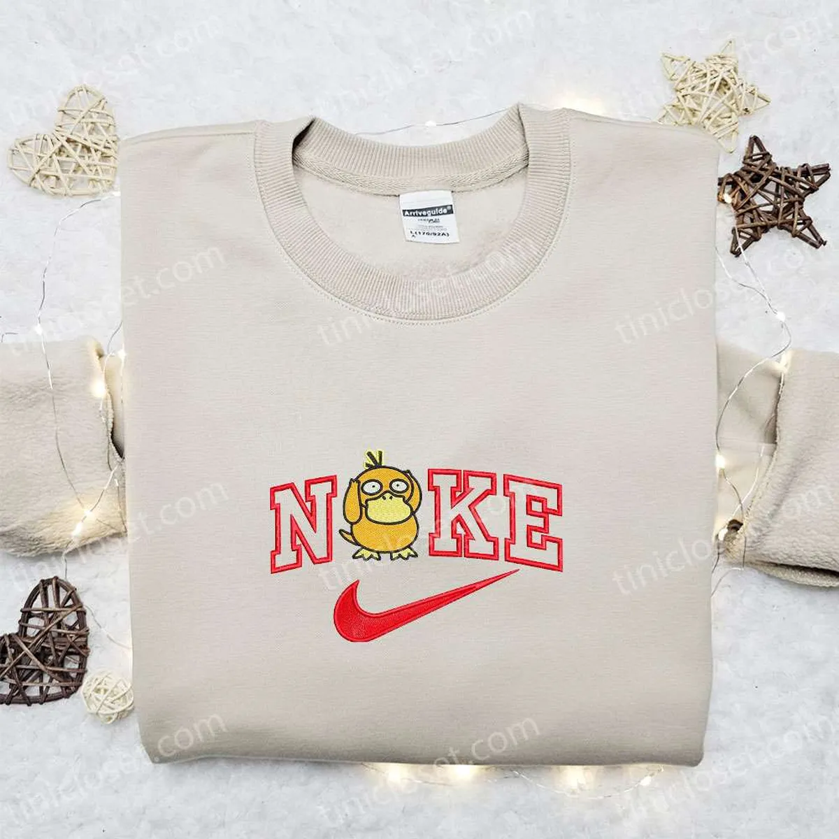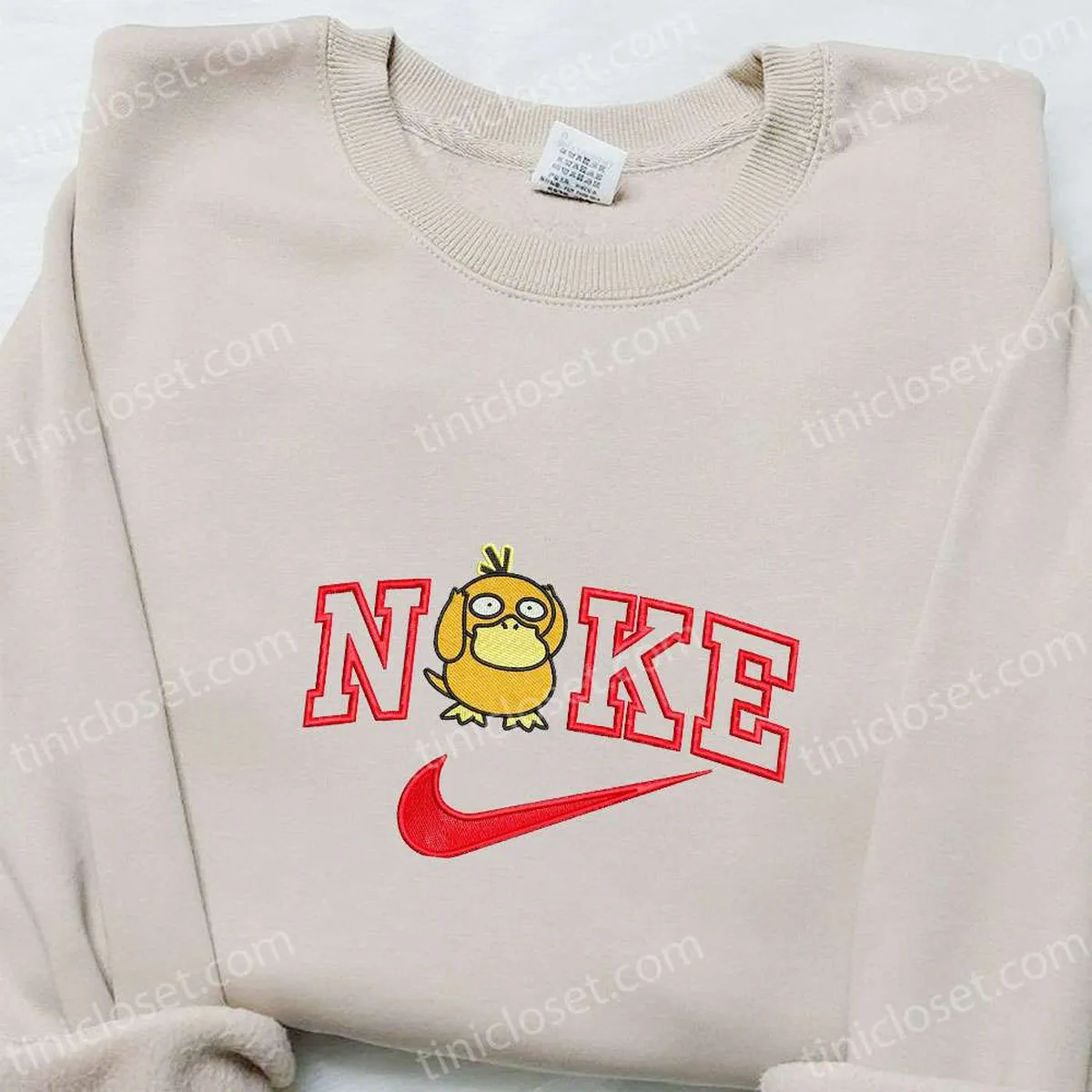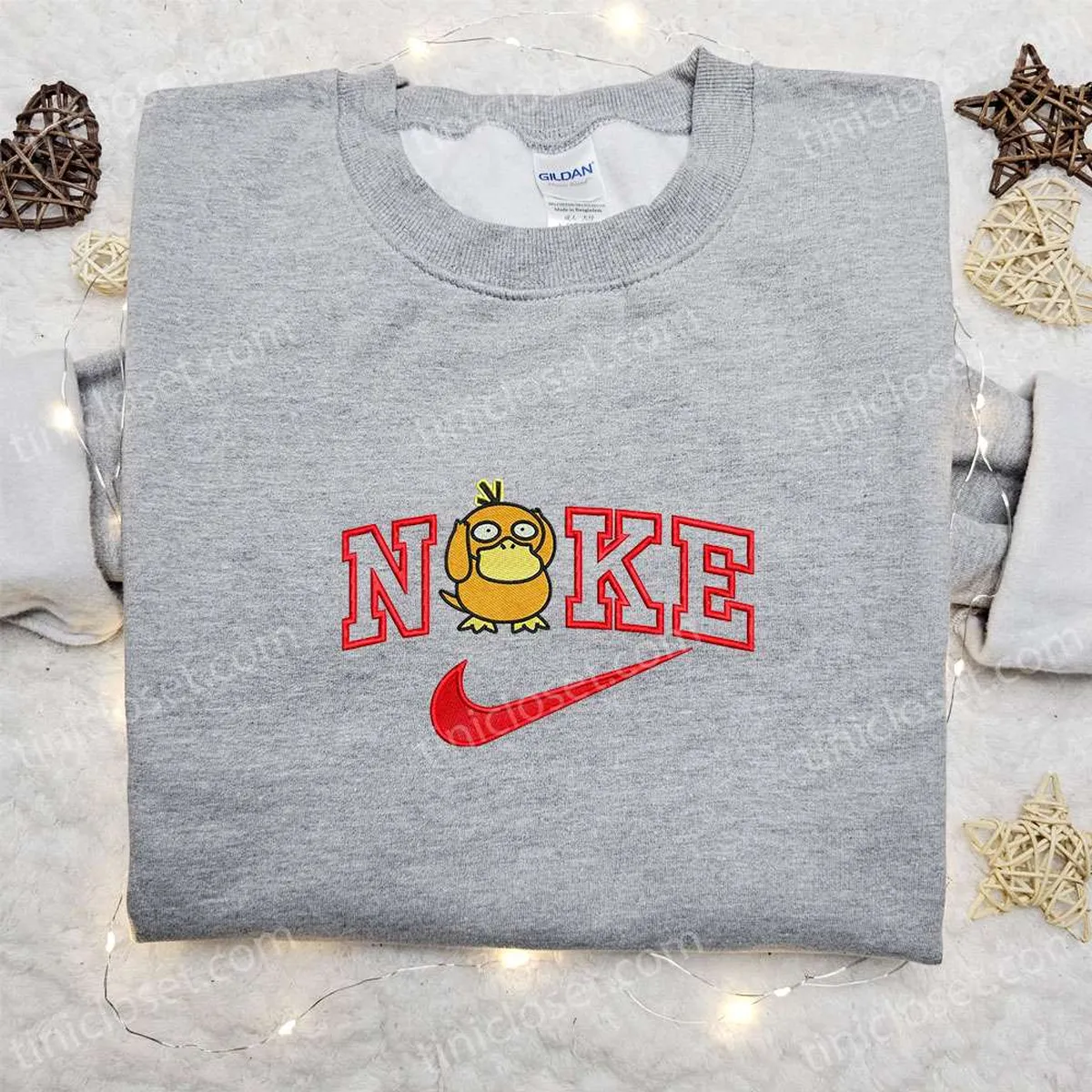 Psyduck x Nike Swoosh Embroidered Shirt, Pokemon Anime Embroidered Hoodie, Nike Inspired Embroidered Sweatshirt