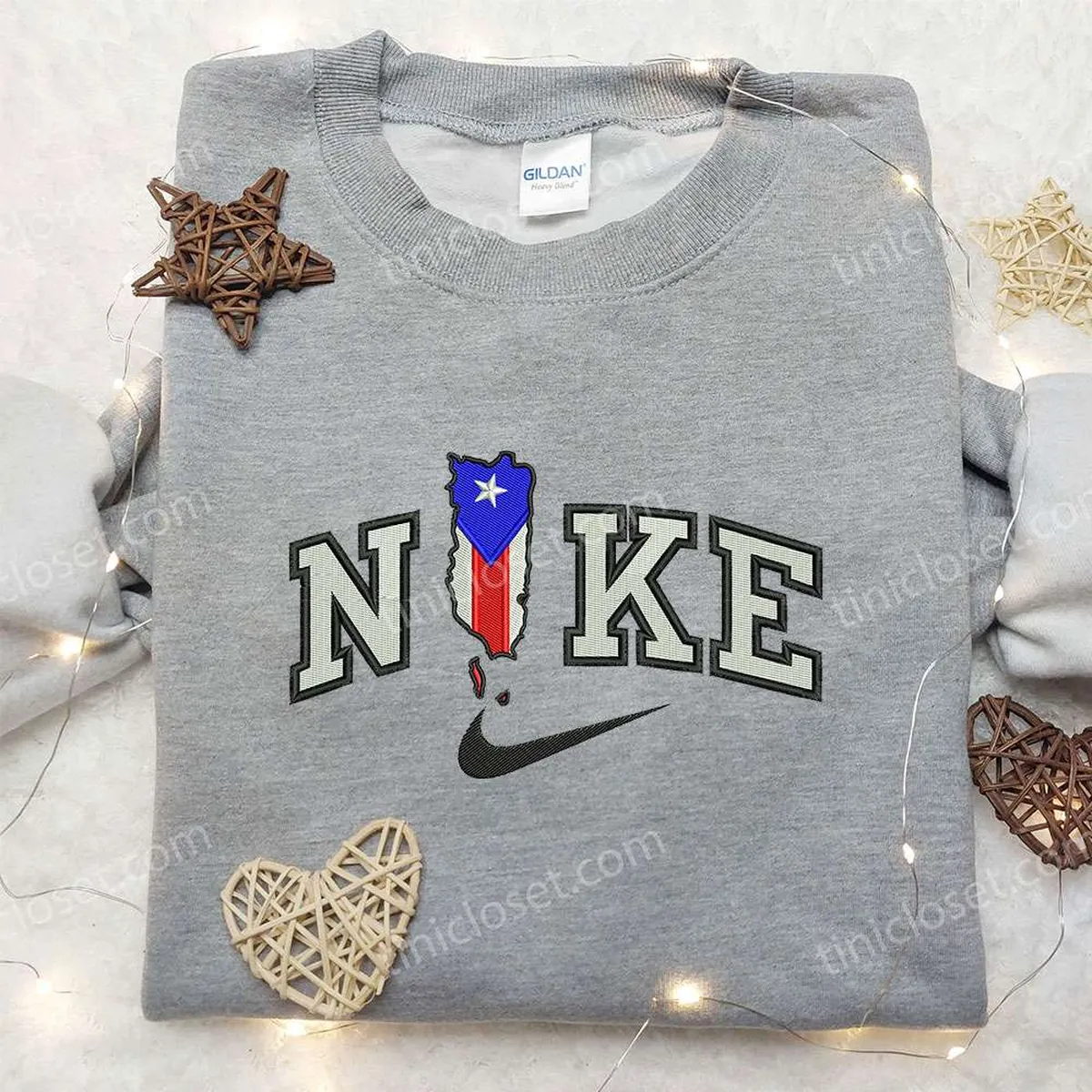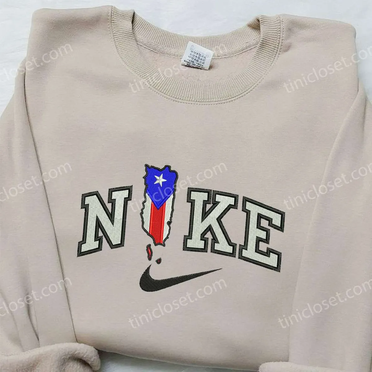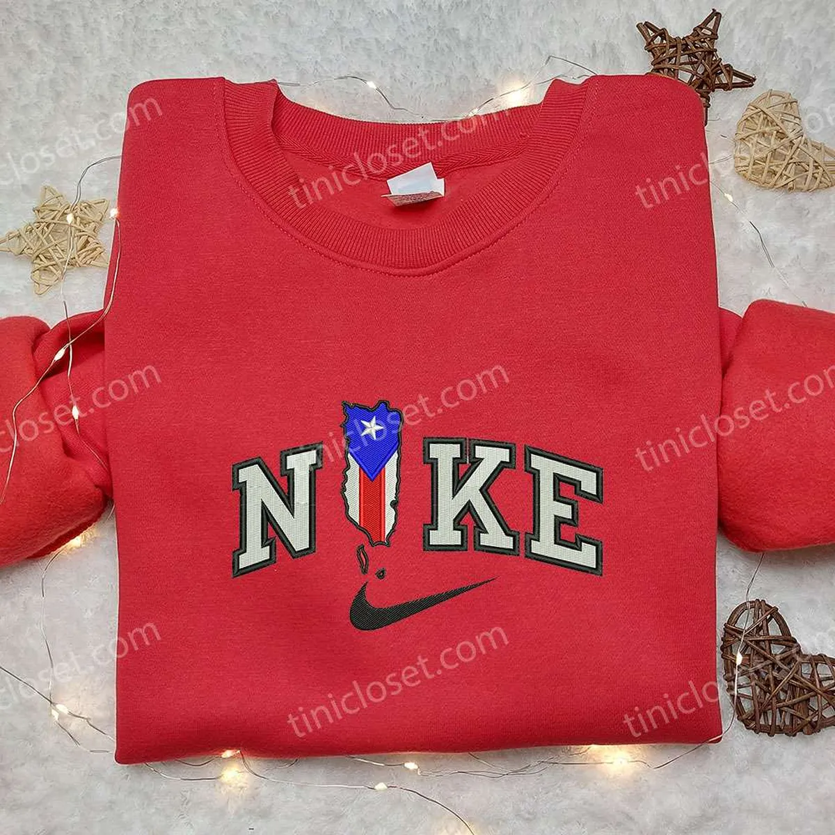 Puerto Rican Flag x Nike Embroidered Shirt, National Flag Embroidered Shirt, Nike Inspired Embroidered Shirt