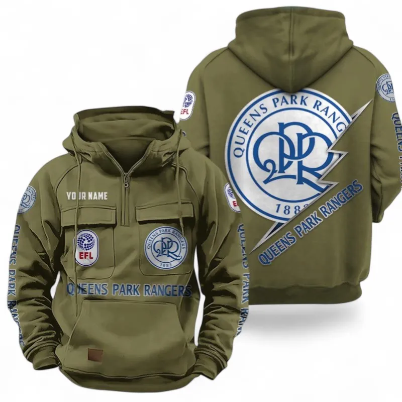 Queens Park Rangers Fans Gift Tactical Quarter Zip Hoodie, All Over Print Tactical Quarter Zip Hoodie For Sport Fan, Custom Name EPL113073025475-Army Green