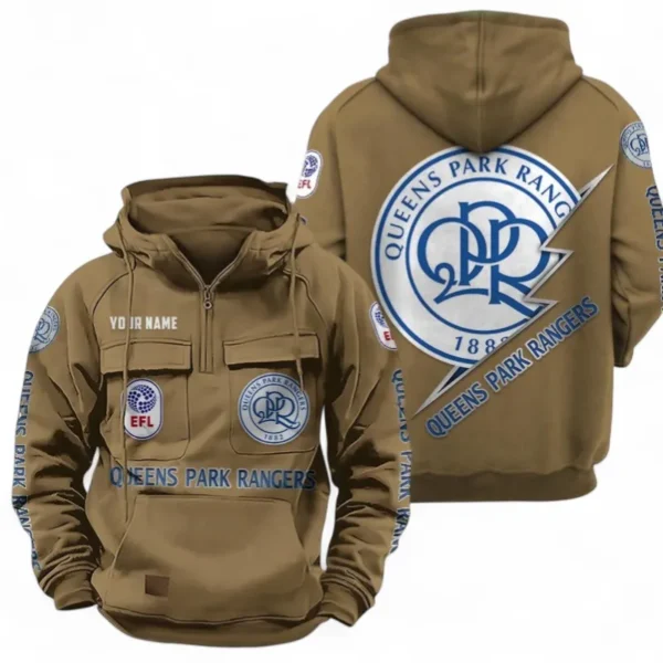 Queens Park Rangers Fans Gift Tactical Quarter Zip Hoodie, All Over Print Tactical Quarter Zip Hoodie For Sport Fan, Custom Name EPL113073025475-Khaki