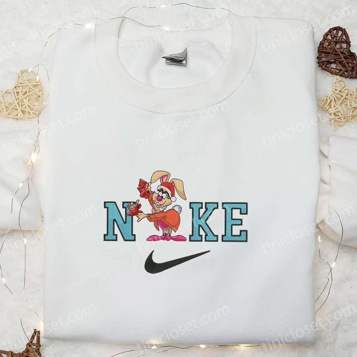 Rabbit Alice In Wonderland x Nike Christmas Embroidered Sweatshirt, Cartoon Christmas Embroidered Shirt, Best Christmas Gift Ideas