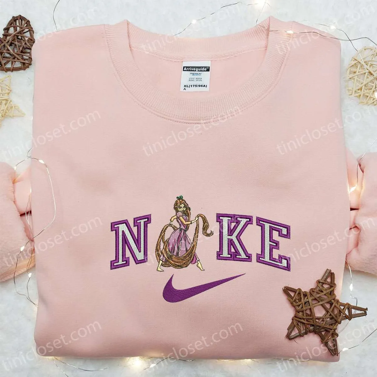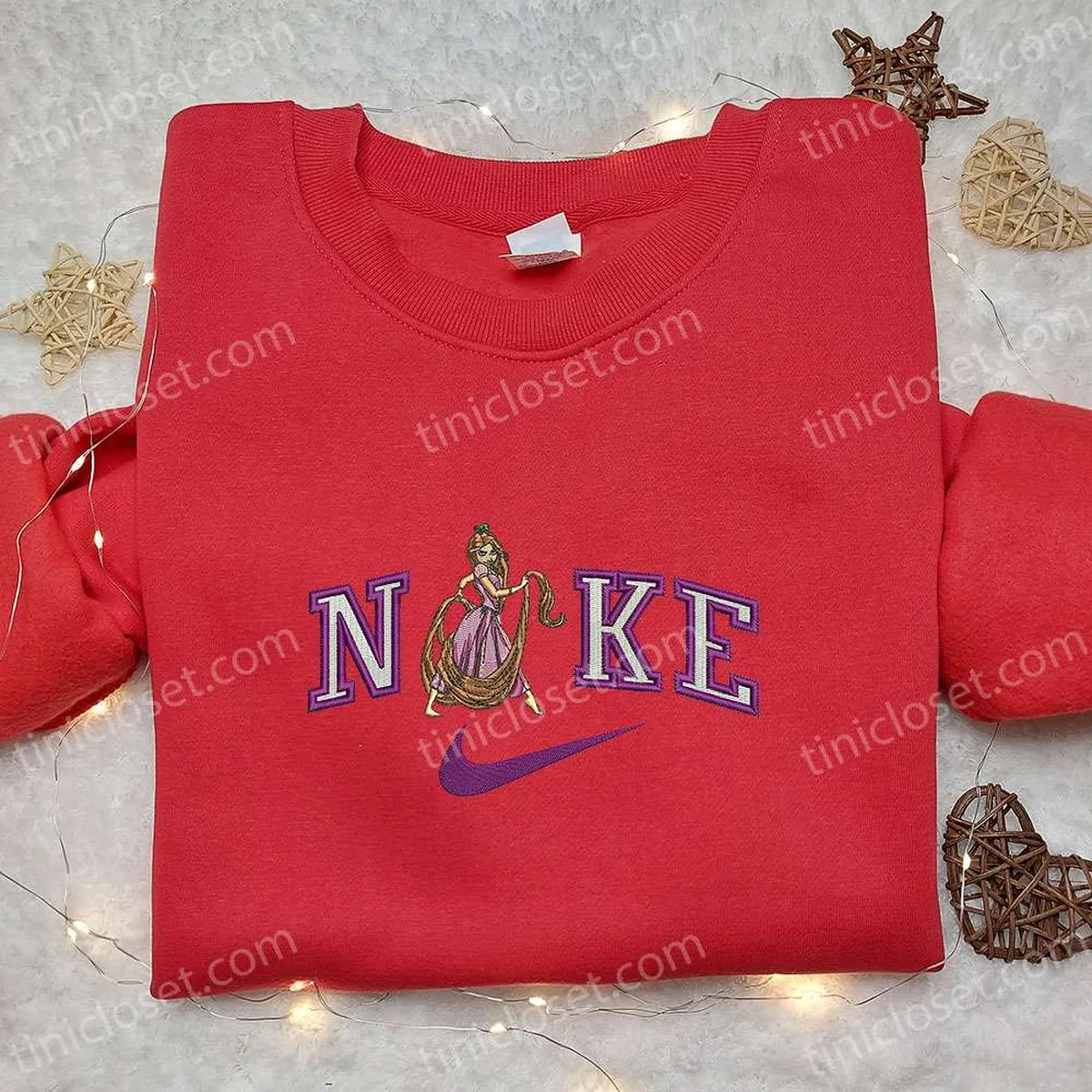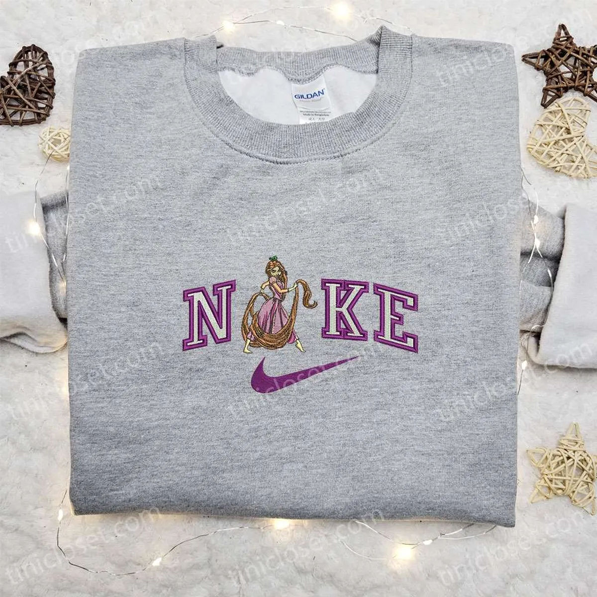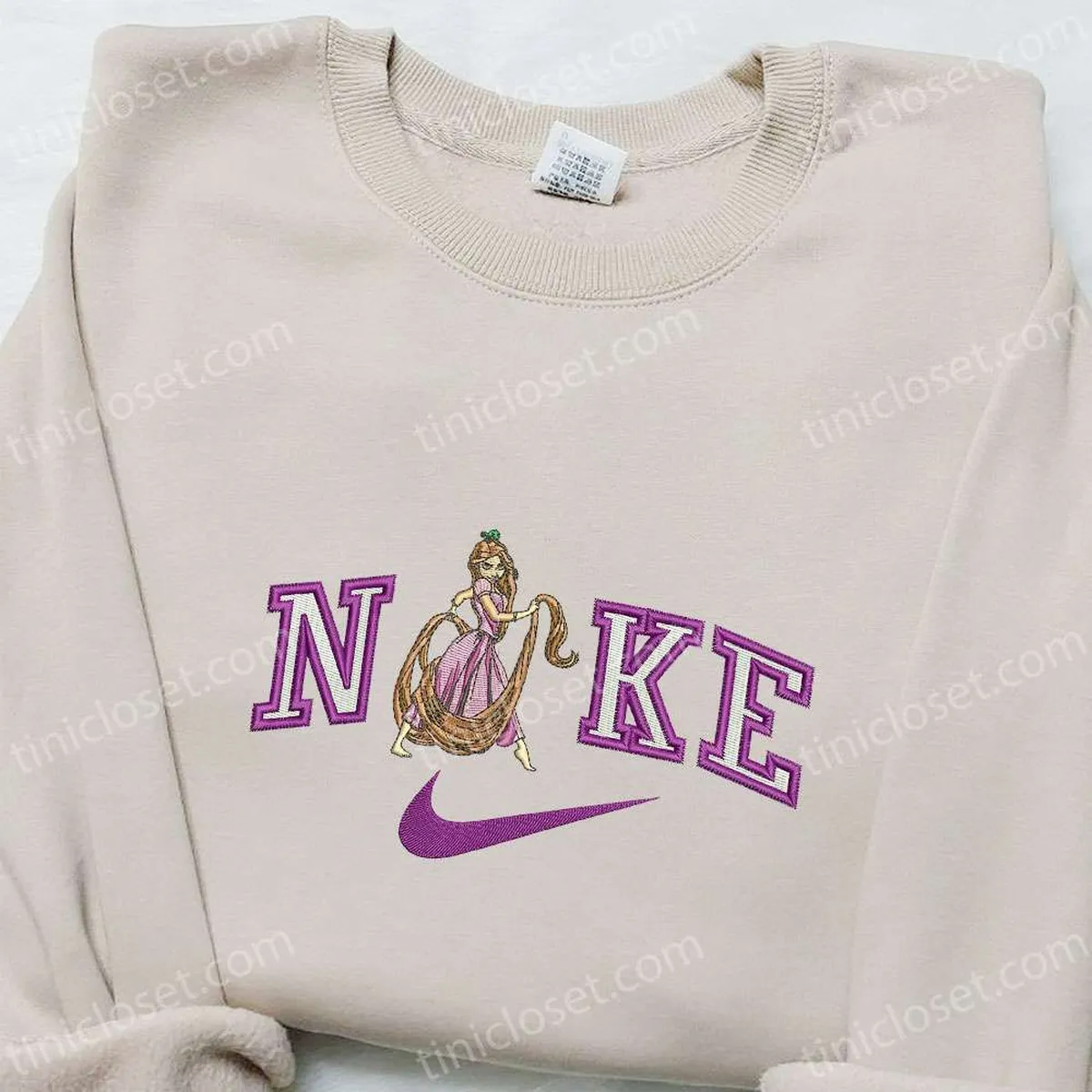 Rapunzel x Nike Cartoon Embroidered Shirt, Custom Nike Embroidered T-shirt, Best Gift Ideas for Family