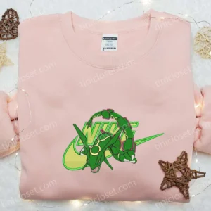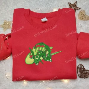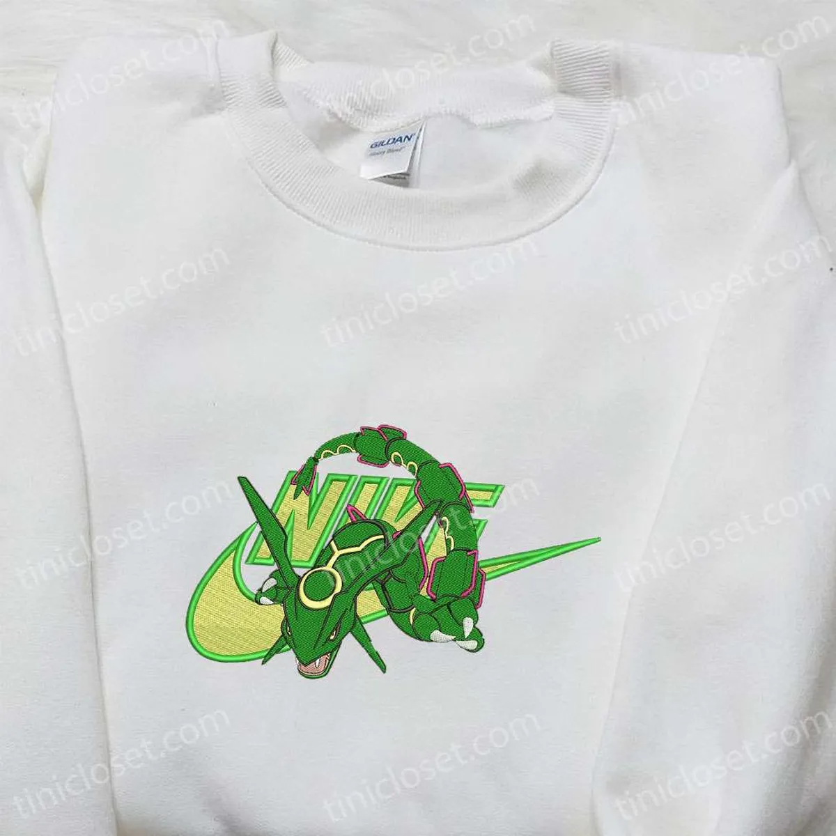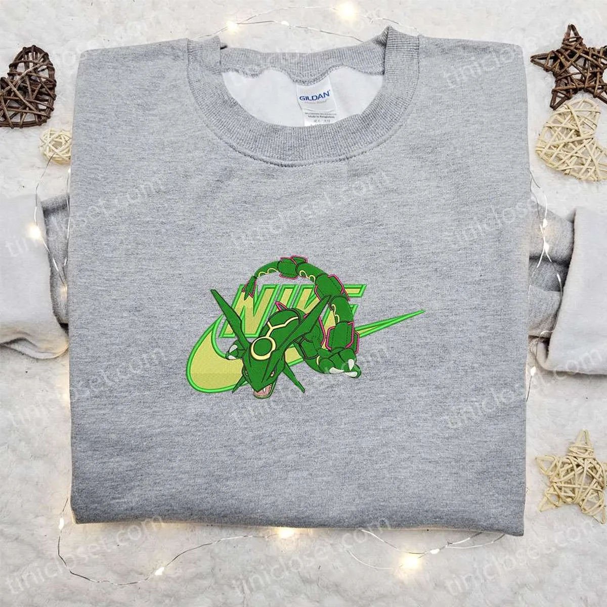 Rayquaza x Swoosh Anime Embroidered Sweatshirt, Pokemon Embroidered T-shirt, Best Gift Ideas for Family
