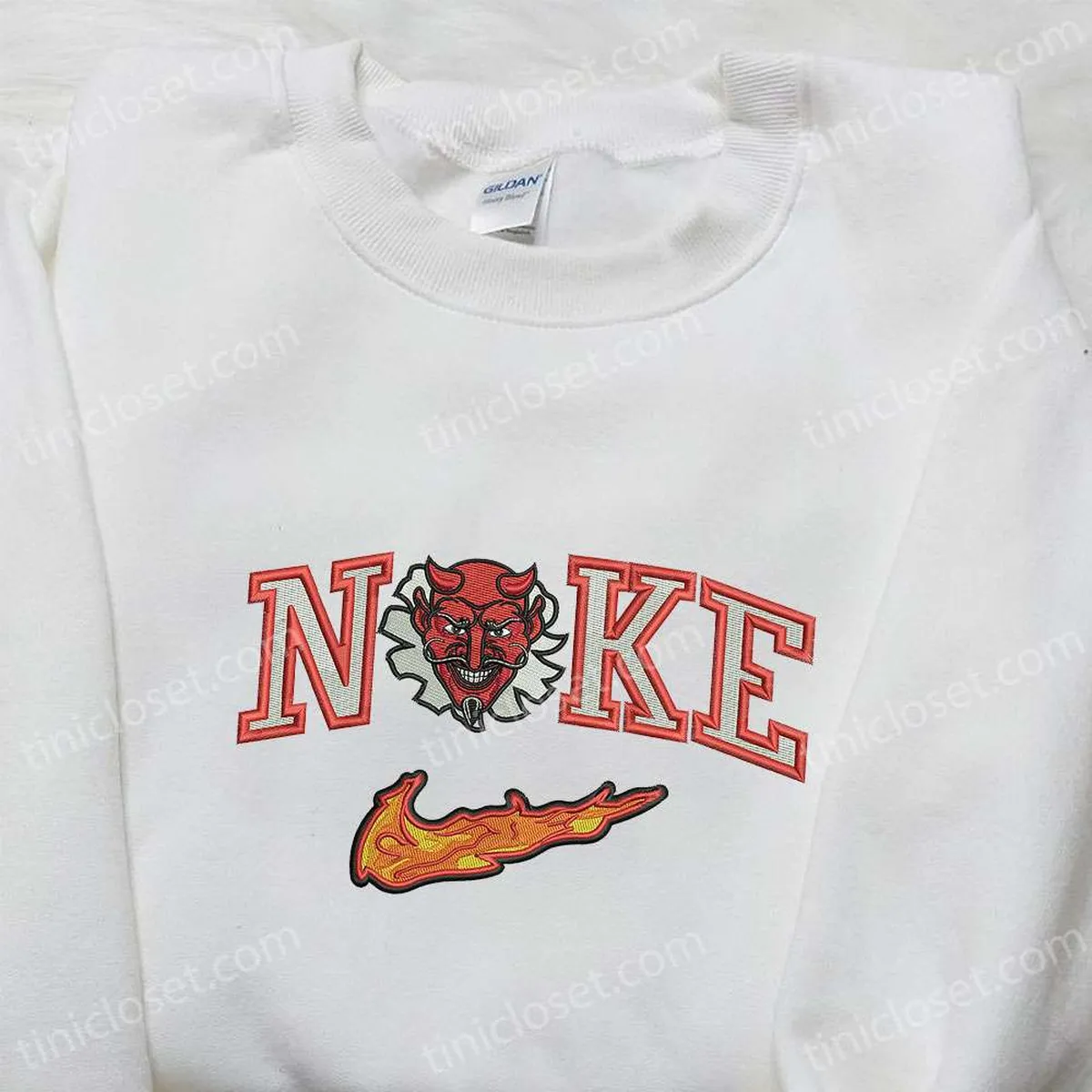 Red Devil x Nike Embroidered Hoodie, Nike Inspired Embroidered Shirt, Best Halloween Gift Ideas