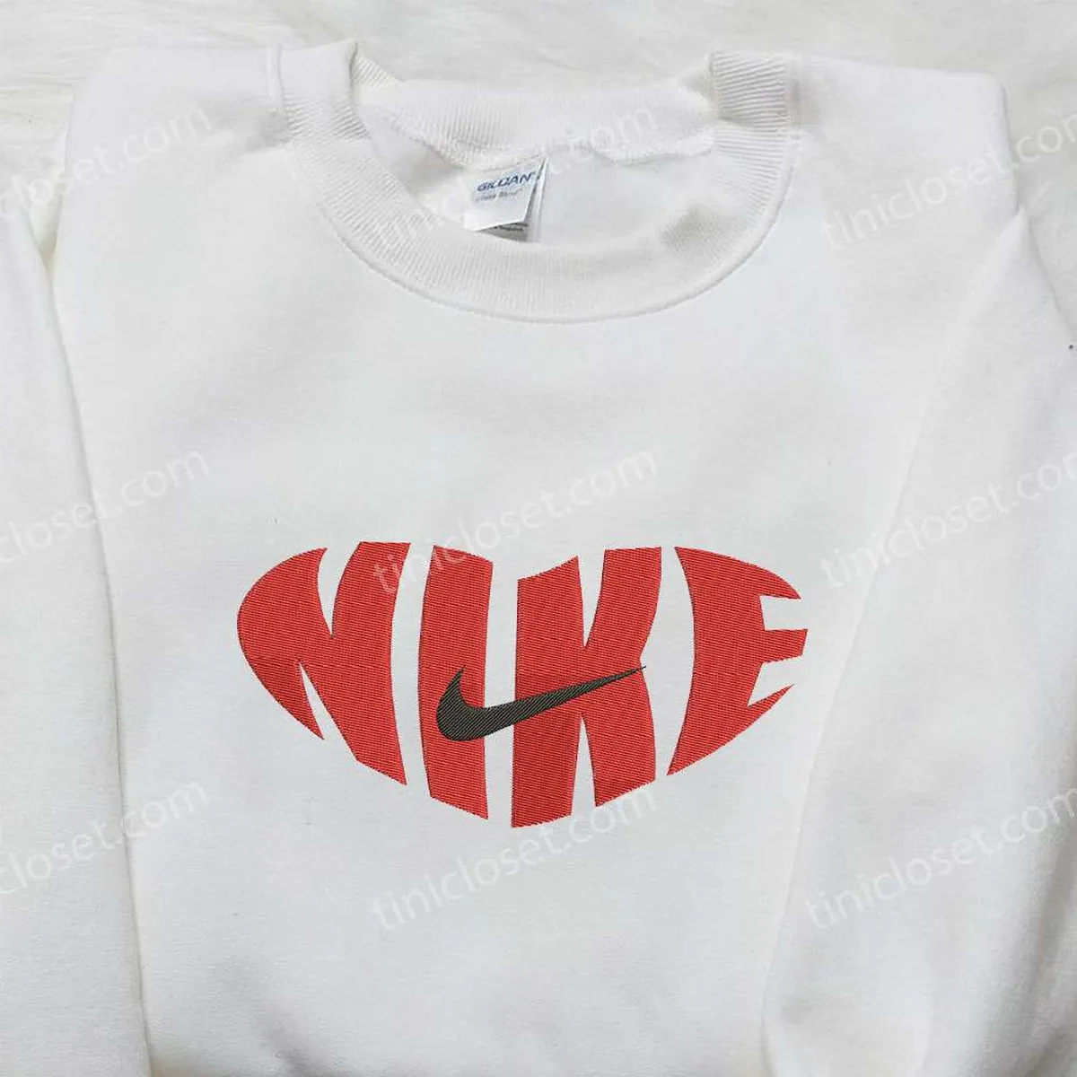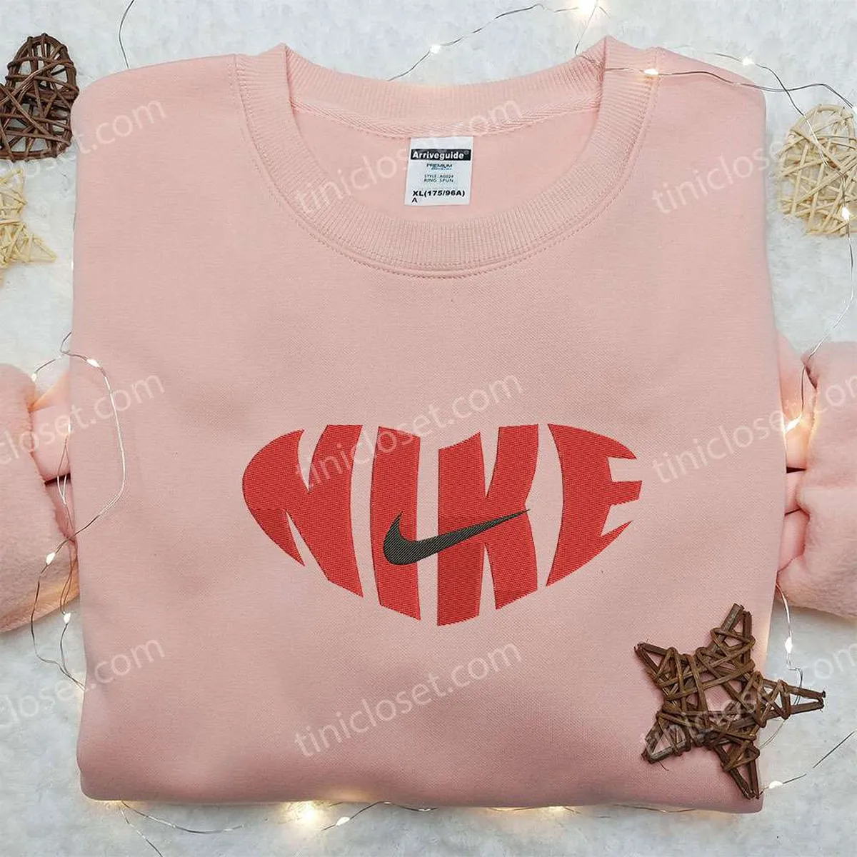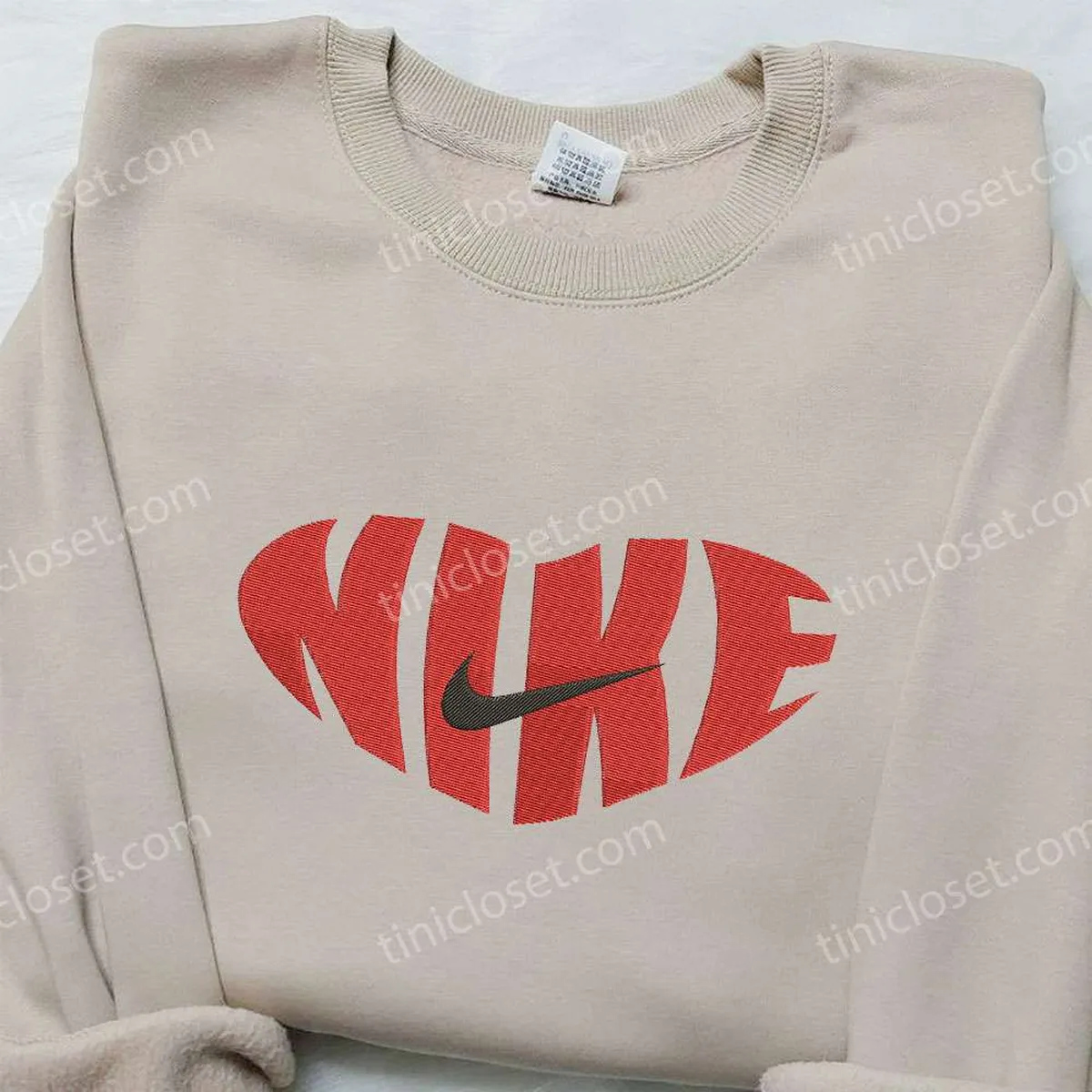 Red Heart Love x Nike Swoosh Embroidered Shirt, Nike Inspired Logo Shirt, Best Valentine Day Gift