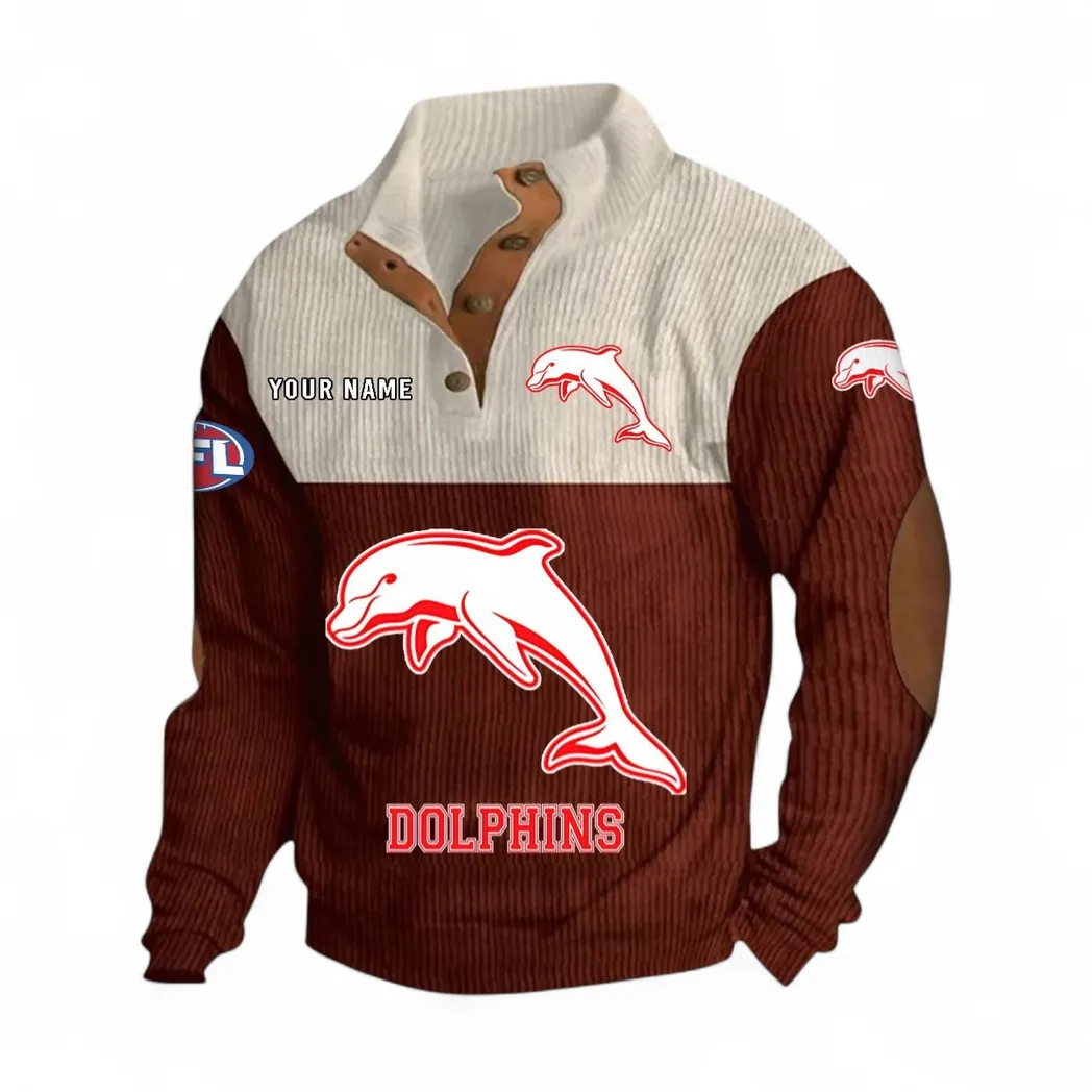 Custom Redcliffe Dolphins Stand-Up Collar Hoodie – Fan-First Style, Cold-Weather Ready
