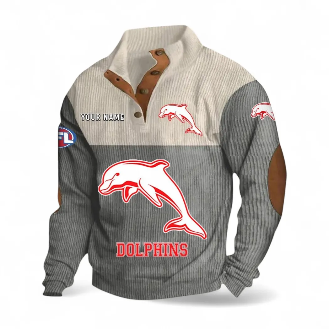 Custom Redcliffe Dolphins Stand-Up Collar Hoodie – Fan-First Style, Cold-Weather Ready