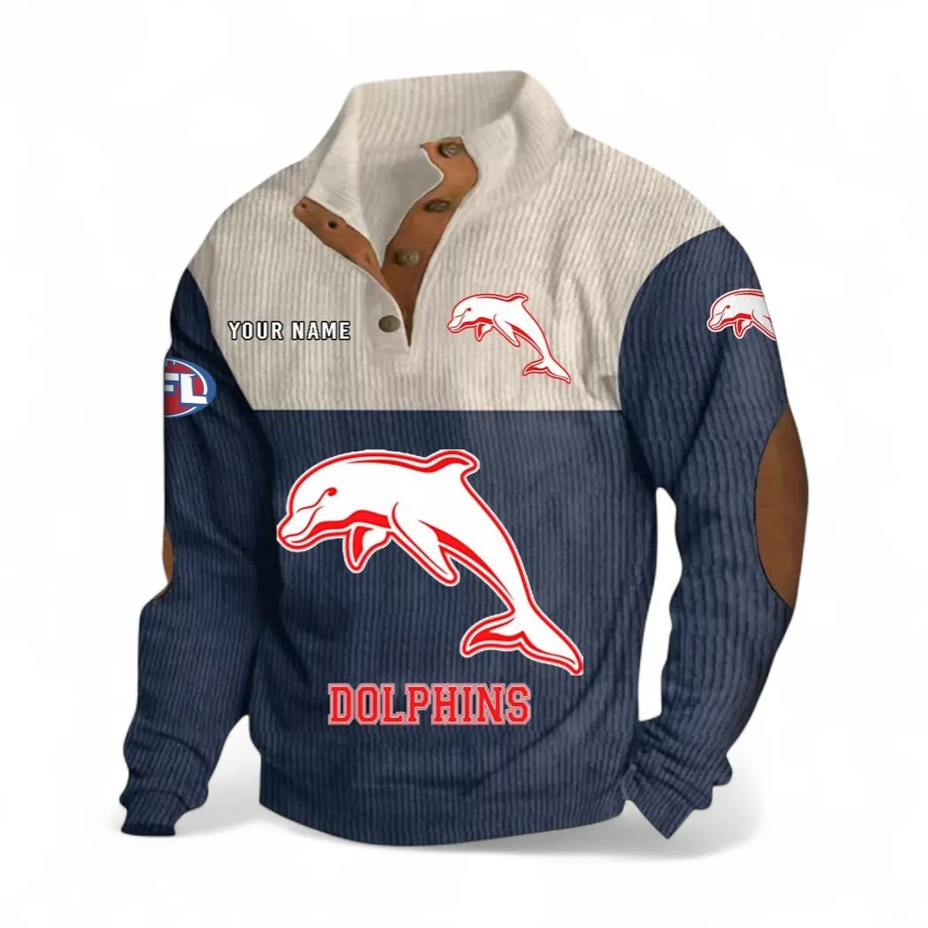 Custom Redcliffe Dolphins Stand-Up Collar Hoodie – Fan-First Style, Cold-Weather Ready
