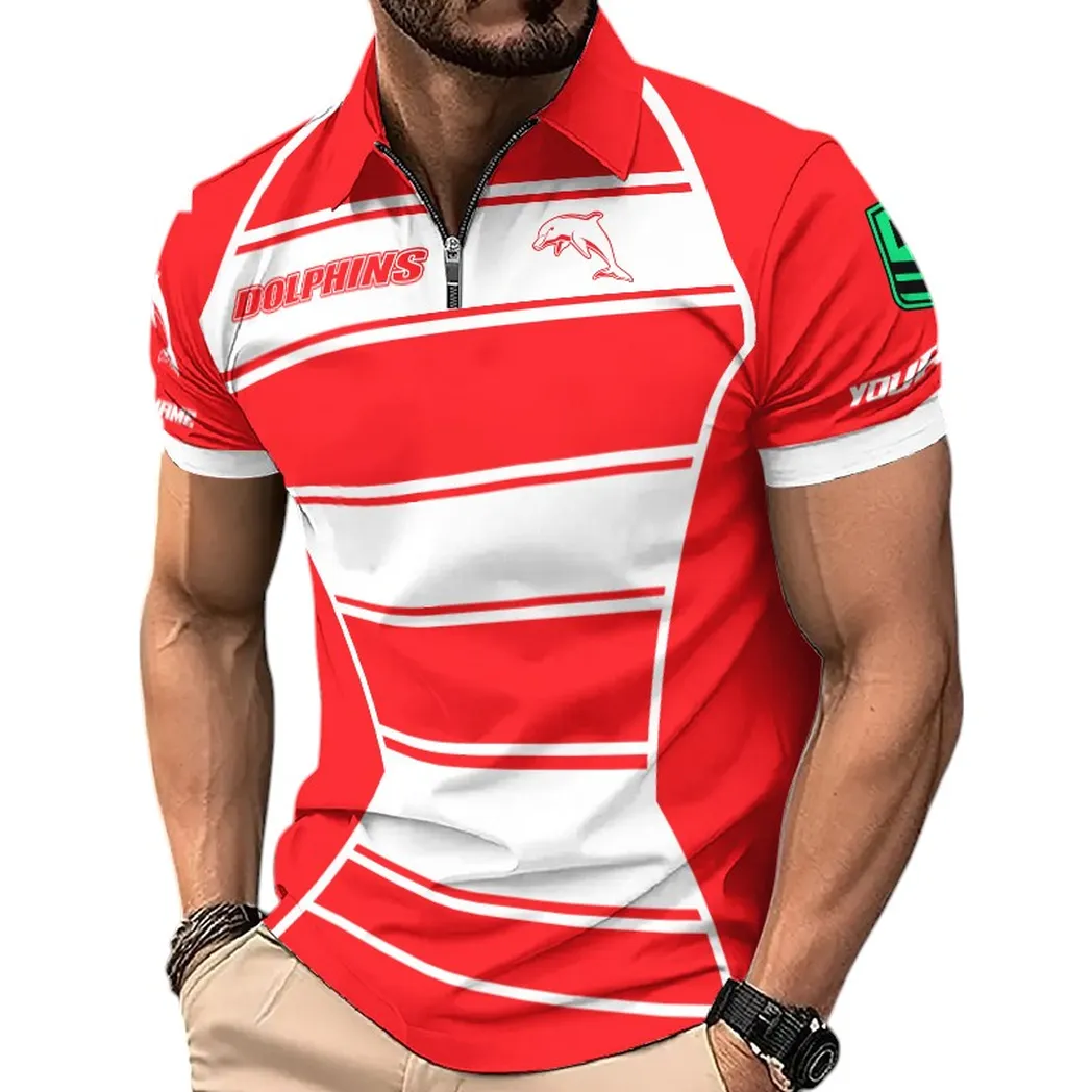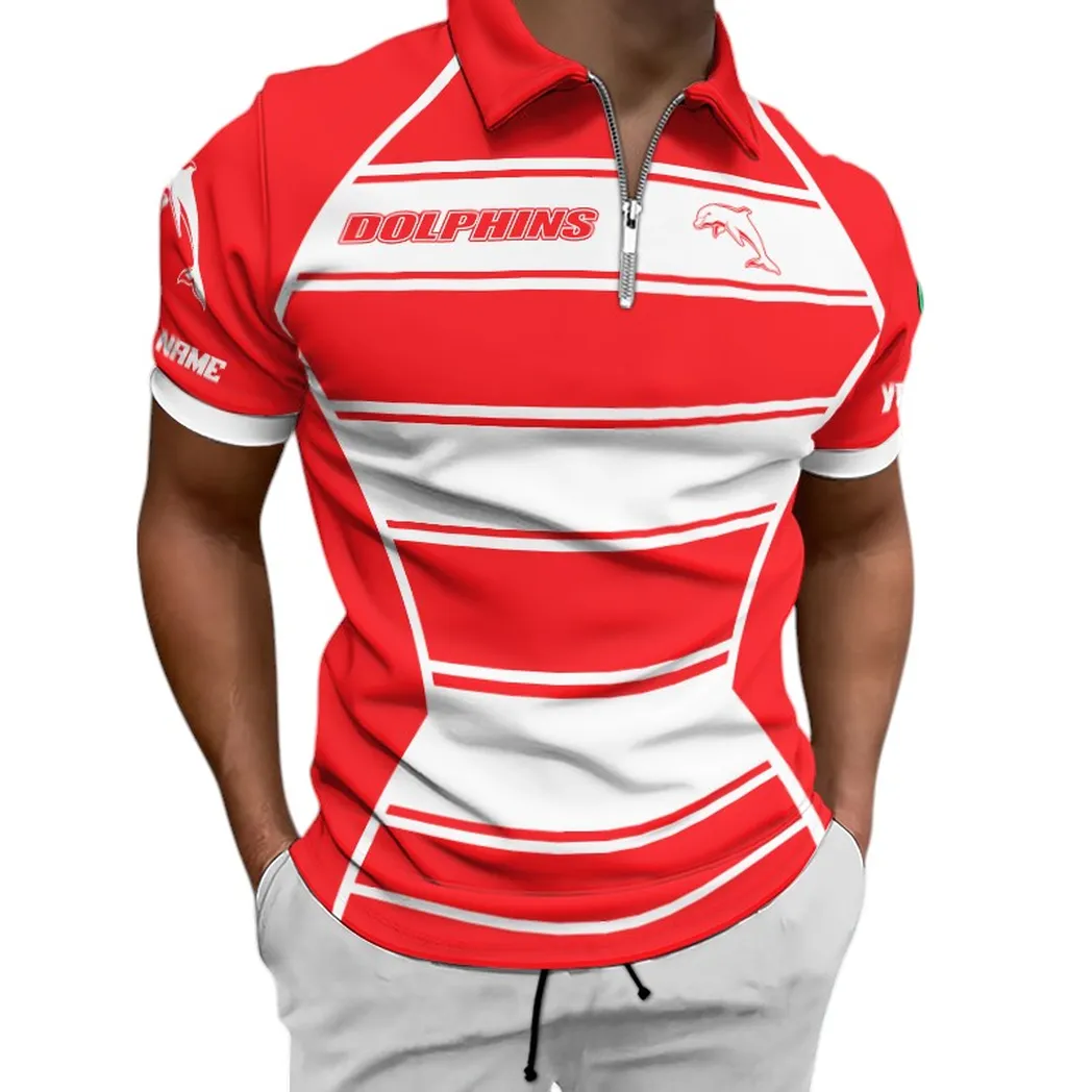 Redcliffe Dolphins Zipper Polo Shirt, All Over Print Zipper Polo Shirt Redcliffe Dolphins DNRL144722036