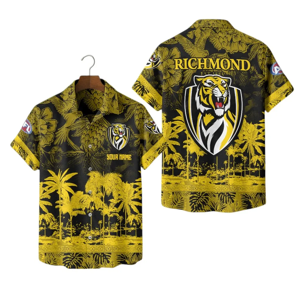 Richmond Fans Gift Hawaiian Shirt, All Over Print Hawaiian Shirt For Sport Fan, Custom Name AFL157071425123