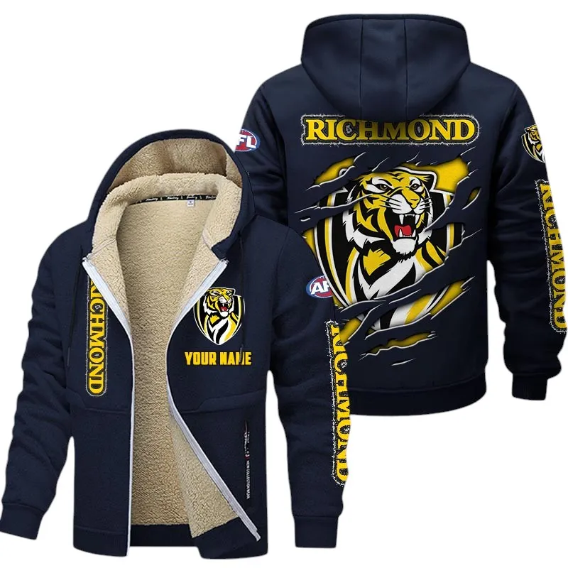 Richmond Fans Gift Lamb Fleece Thick Coat, All Over Print Thick Coat For Sport Fan, Custom Name AFL145071825136 – Navy blue