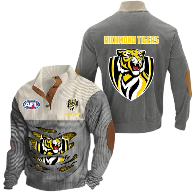Richmond Fans Gift Men’s Stand Up Collar Base Shirt, All Over Print Base Shirt For Sport Fan, Custom Name AFL165020825126 – Gray