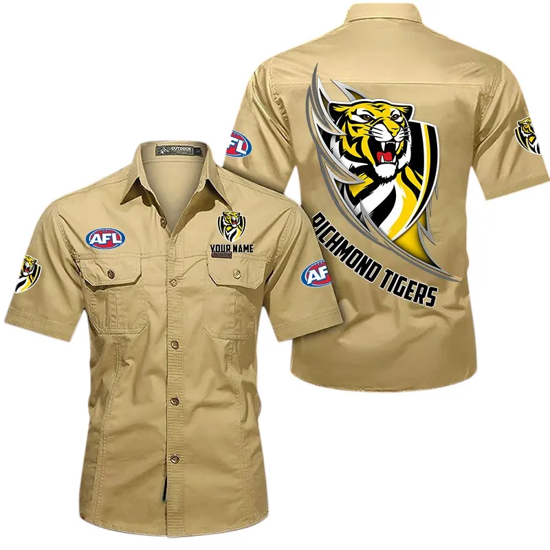 Richmond Fans Gift Short Sleeved Shirt, All Over Print Shỉt For Sport Fan, Custom Name AFL155071425132 – Khaki