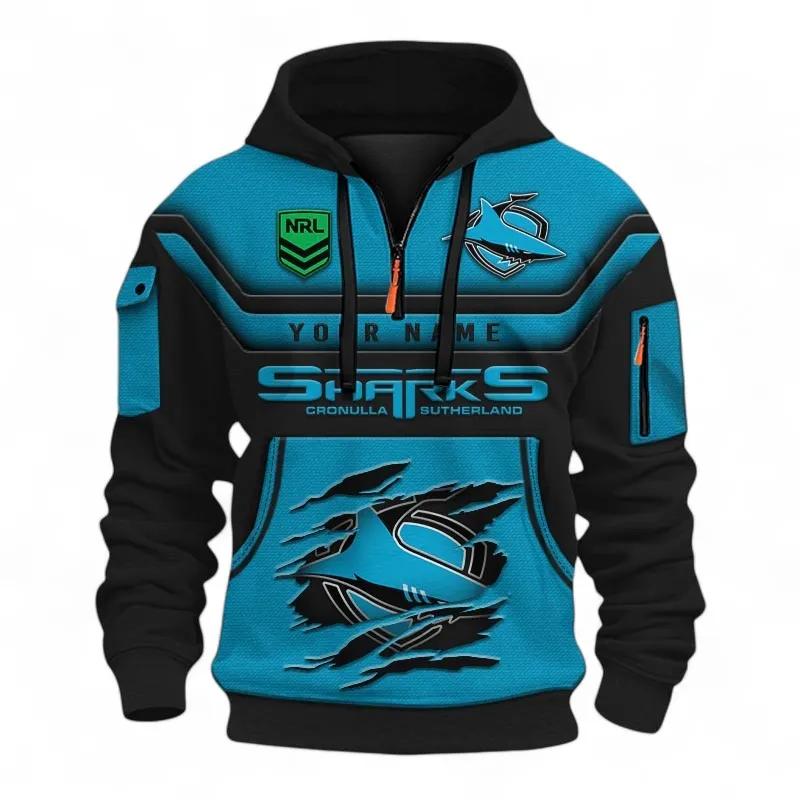 Rugby League Football Fans Gift Hoodie Half Zip 3D, All Over Print 3D Half-Zip Hoodie, Custom Name NRL205090925003-Style 1