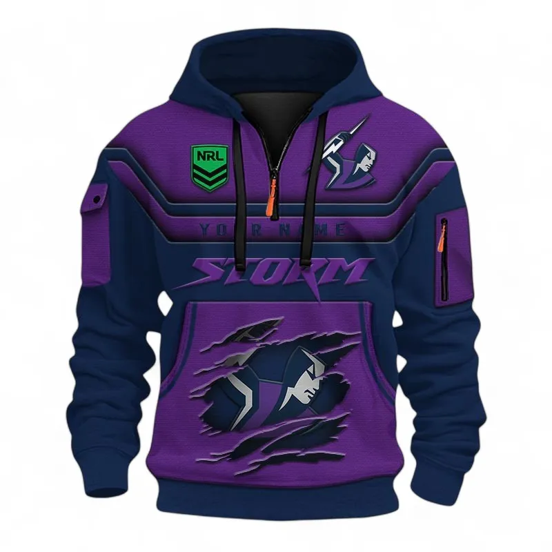 Rugby League Football Fans Gift Hoodie Half Zip 3D, All Over Print 3D Half-Zip Hoodie, Custom Name NRL205090925007-Style 2