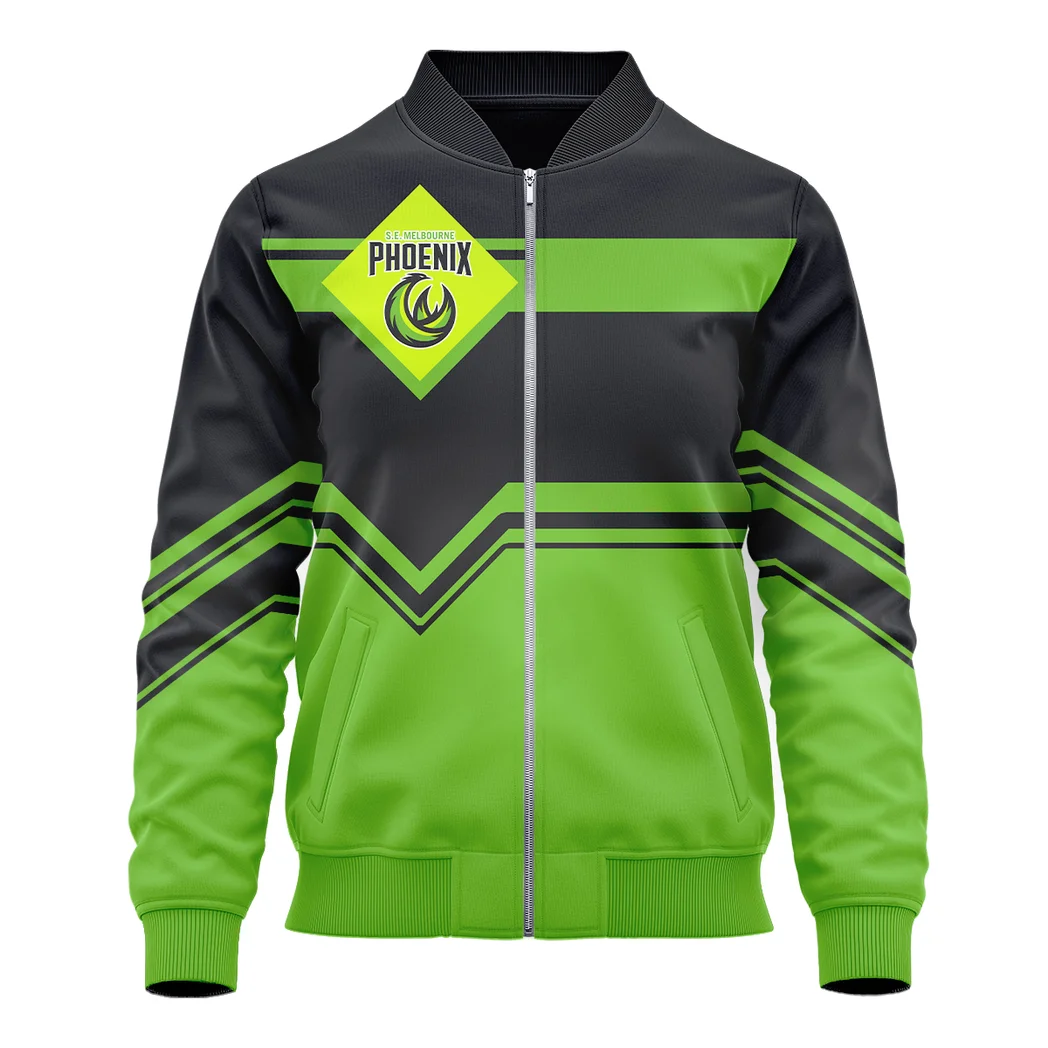 🛒 Grab your S.E. Melbourne Phoenix bomber jacket today and turn heads from the stands to the street.