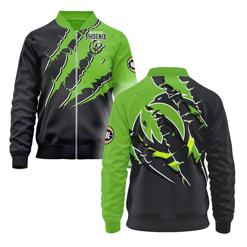🛒 Grab your S.E. Melbourne Phoenix bomber jacket today and turn heads from the stands to the street.