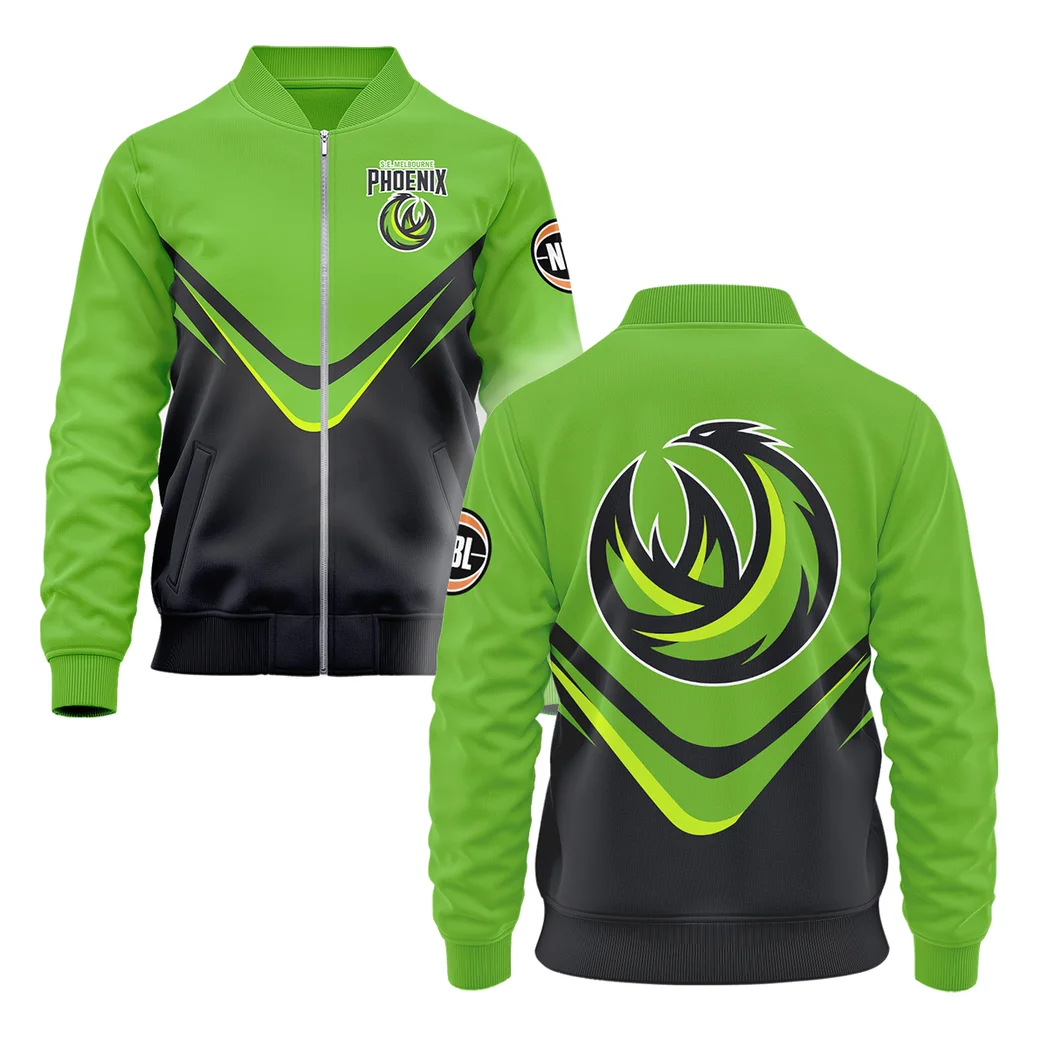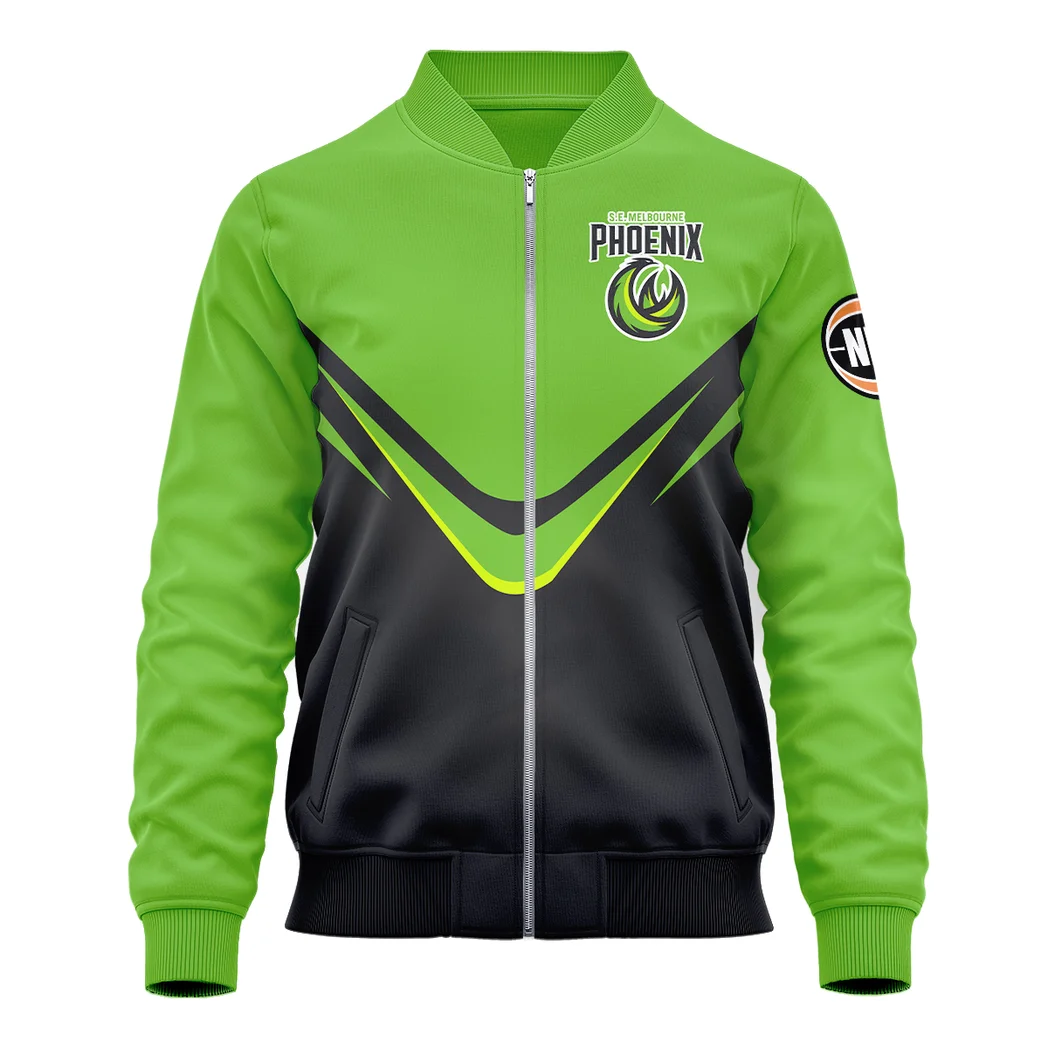 🛒 Grab your S.E. Melbourne Phoenix bomber jacket today and turn heads from the stands to the street.