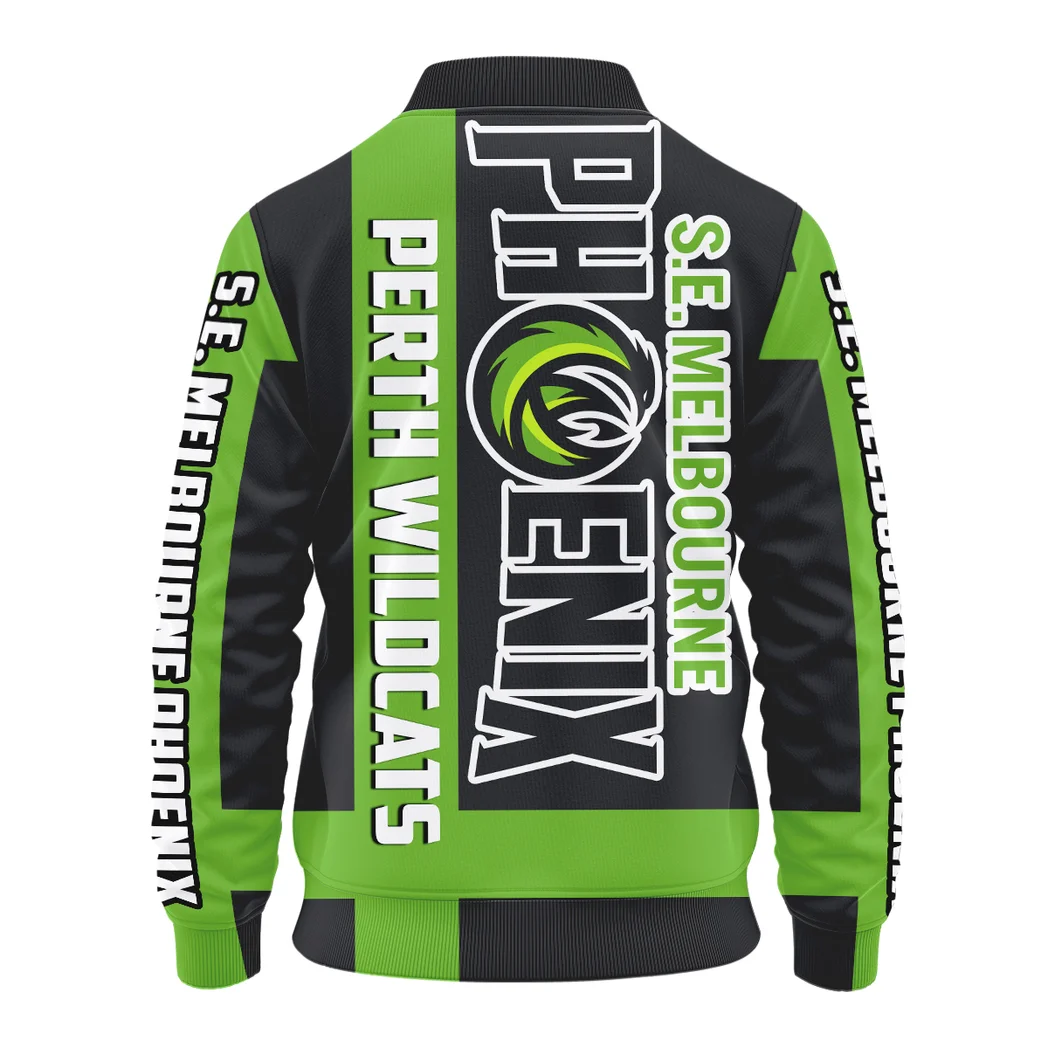 🛒 Grab your S.E. Melbourne Phoenix bomber jacket today and turn heads from the stands to the street.