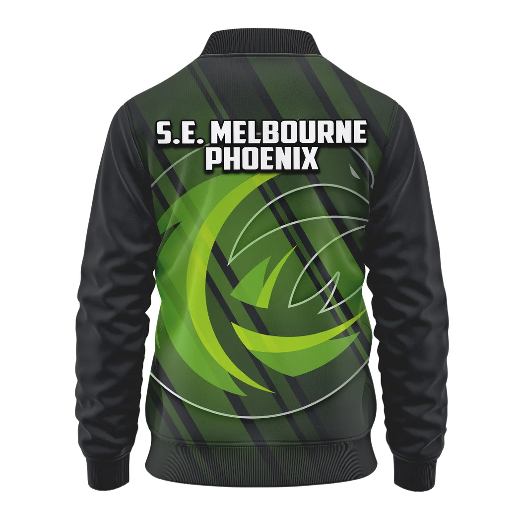 🛒 Grab your S.E. Melbourne Phoenix bomber jacket today and turn heads from the stands to the street.