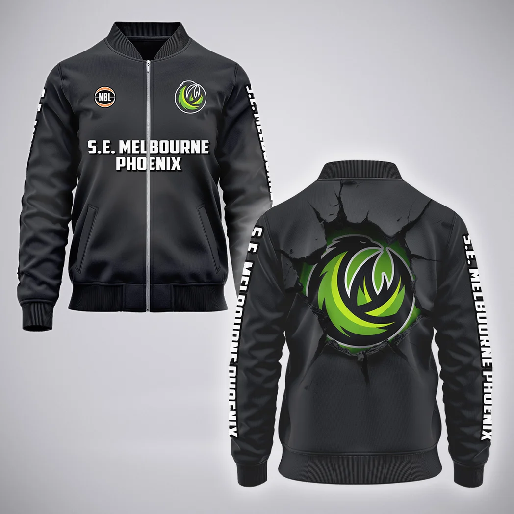 🛒 Grab your S.E. Melbourne Phoenix bomber jacket today and turn heads from the stands to the street.