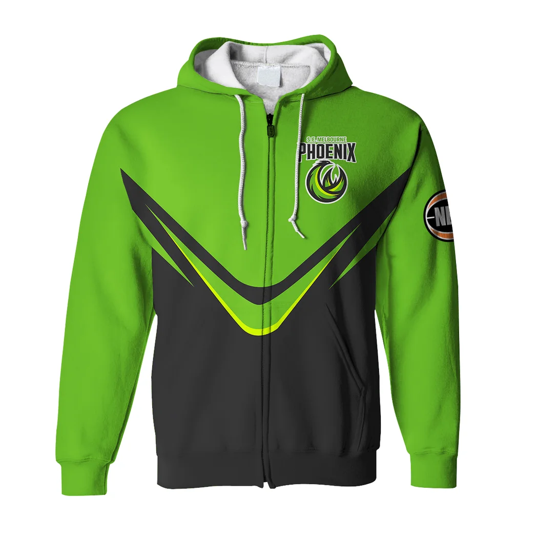 Show your loyalty in style with this official-inspired full-zip hoodie for die-hard S.E. Melbourne Phoenix fans. Whether you’re cheering from the stands, watching at home, or repping your squad on the streets, this hoodie keeps you warm, comfortable, and proud of your team season after season.