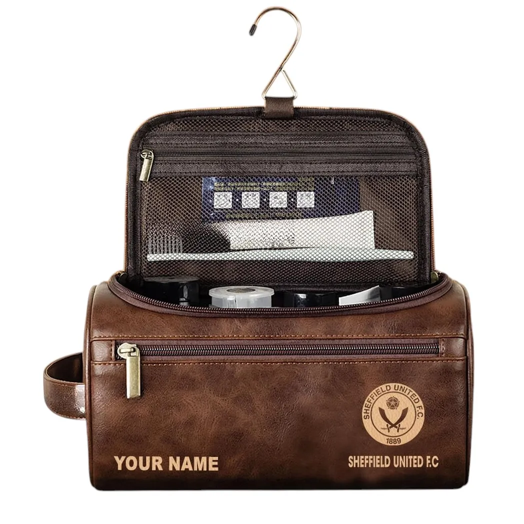 Sheffield United Leather Toiletry Bag, All Over Print Leather Toiletry Bag Sheffield United - Red Brown DEPL5405092052