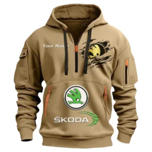 Skoda Half Zip Hoodie CAR113021425827, Best Gift for Him, Husband, Boyfriend – Gray