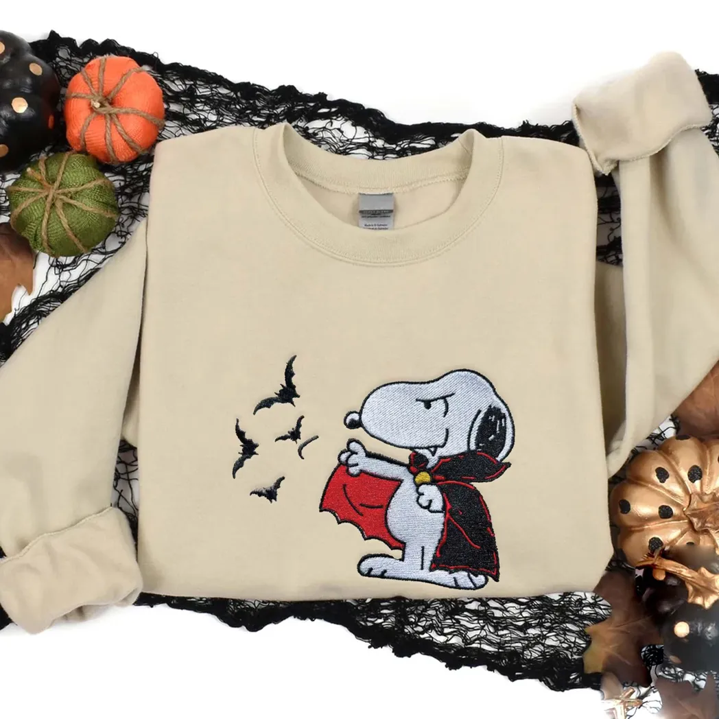 Snoopy Cartoon Halloween Embroidered Sweatshirt Fashion Style