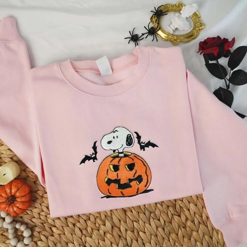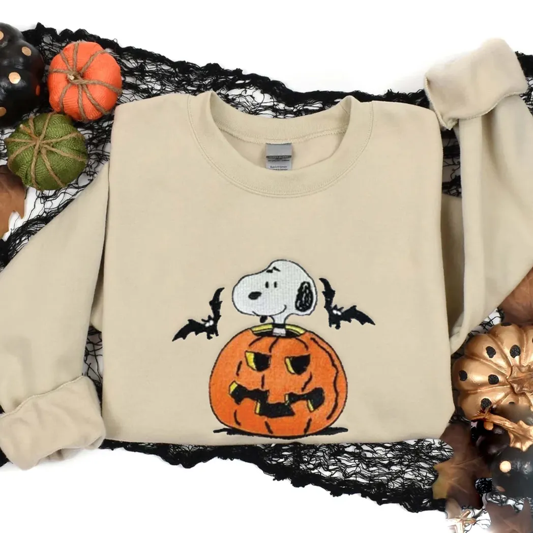 Snoopy Cartoon Halloween Embroidered Sweatshirt Fashion Style