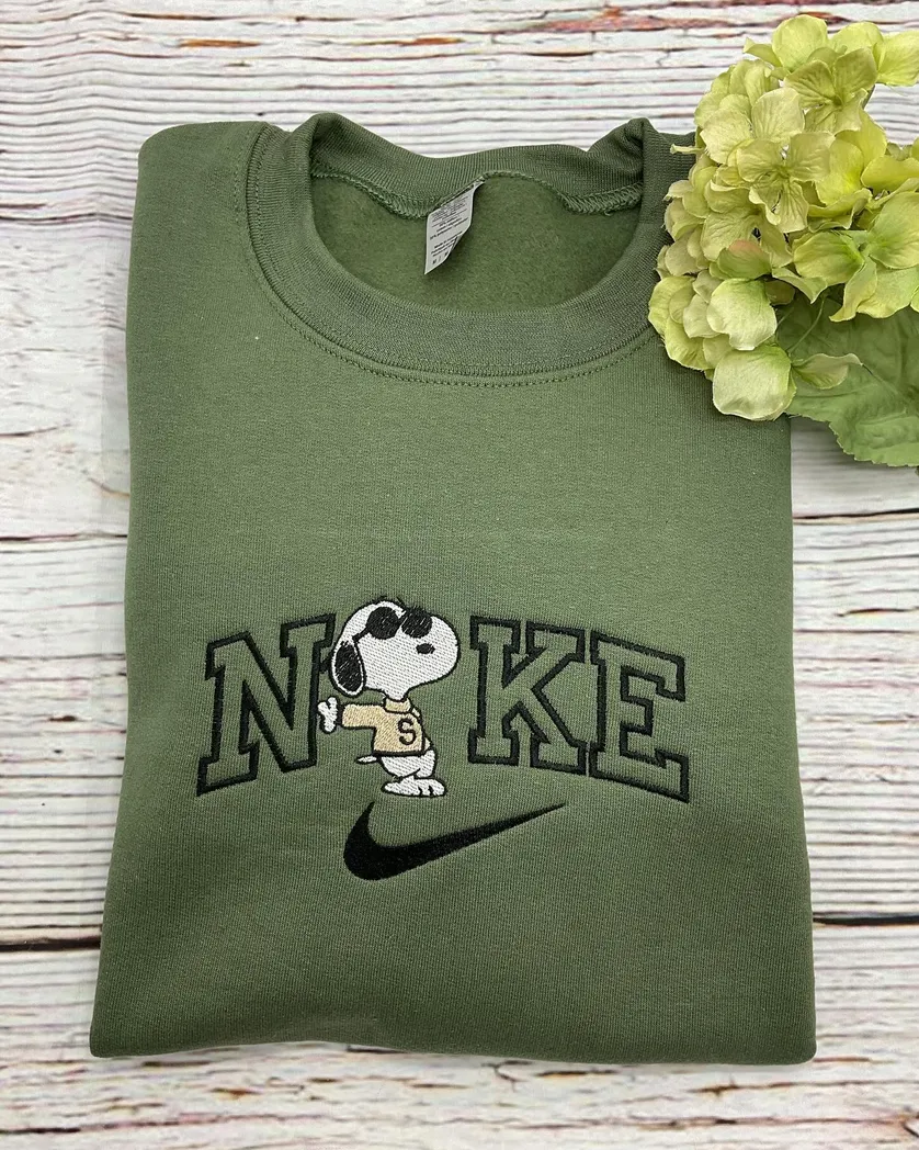 Snoopy Cartoon x Nike Embroidered Sweatshirt Fashion Style For Couples, Valentines Gift For Him/Her