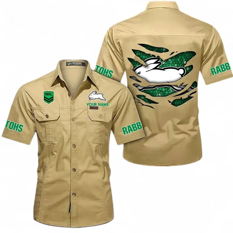 South Sydney Rabbitohs Fans Gift Short Sleeved Shirt, All Over Print Short Sleeved Shirt For Sport Fan, Custom Name NRL171071625568-Khaki