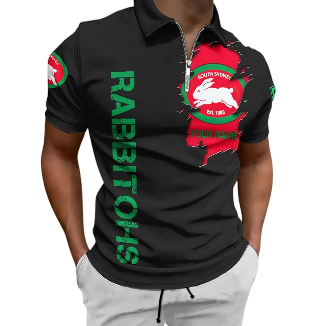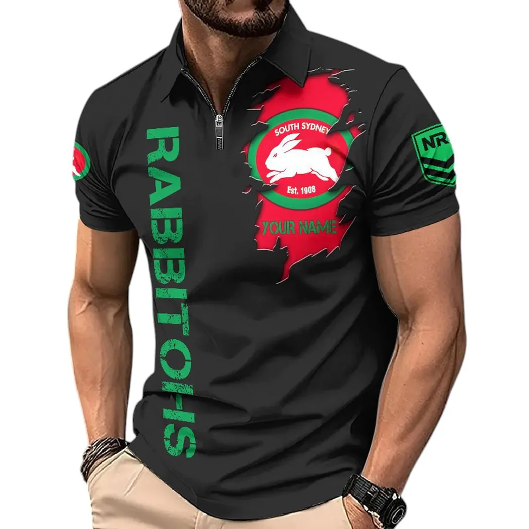 South Sydney Rabbitohs NRL Zipper Polo Shirt NRL01121424363, Gift For Fan South Sydney Rabbitohs