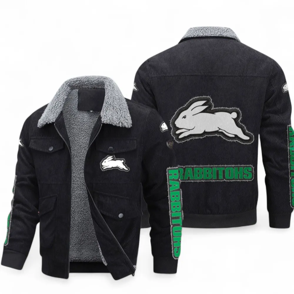 South Sydney Rabbitohs Thickened Corduroy Jacket, All Over Print Thickened Corduroy Jacket For Sport Fan NRL103072425668-Black