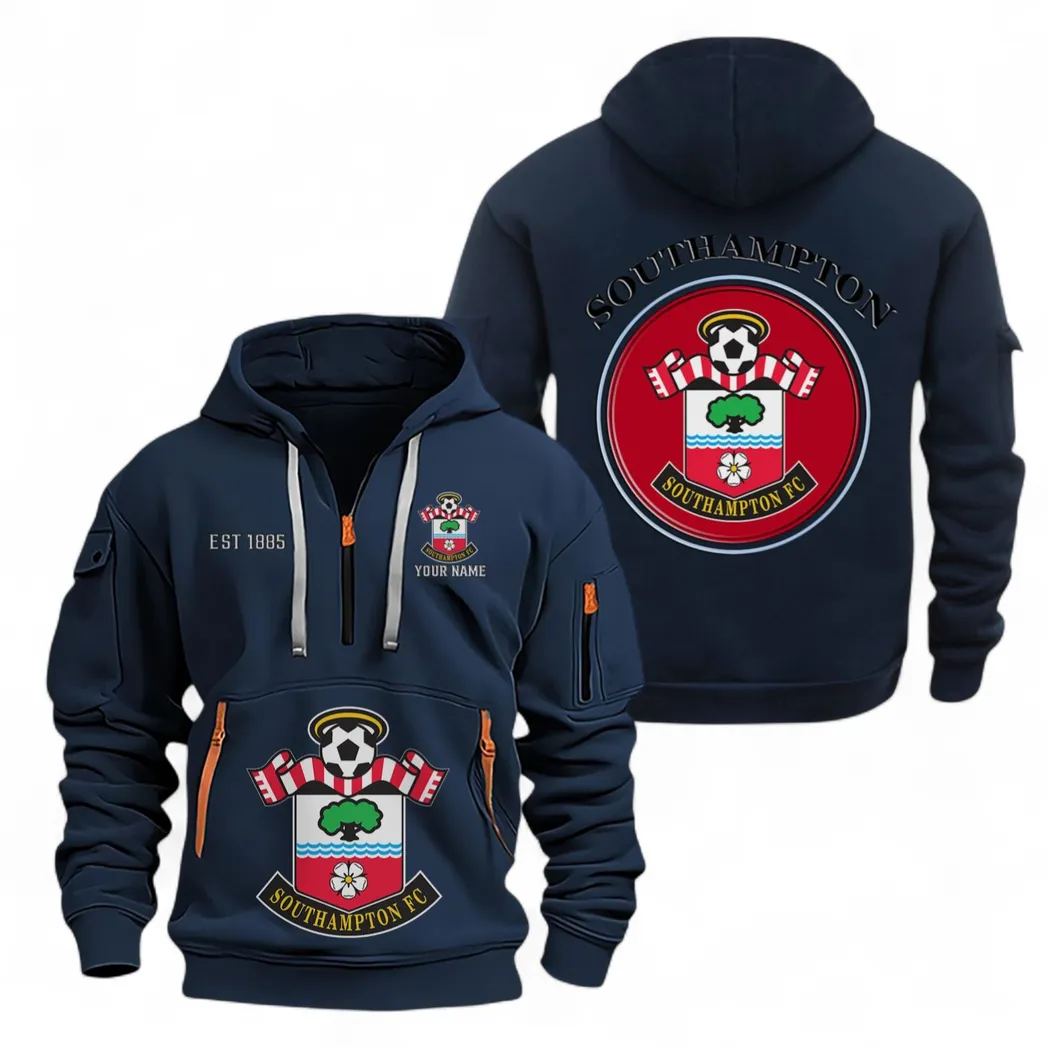 Southampton F.C. Fans Gift Hoodie Half Zipper, All Over Print Hoodie Half Zipper For Sport Fan, Custom Name EPL110073025231-Navy