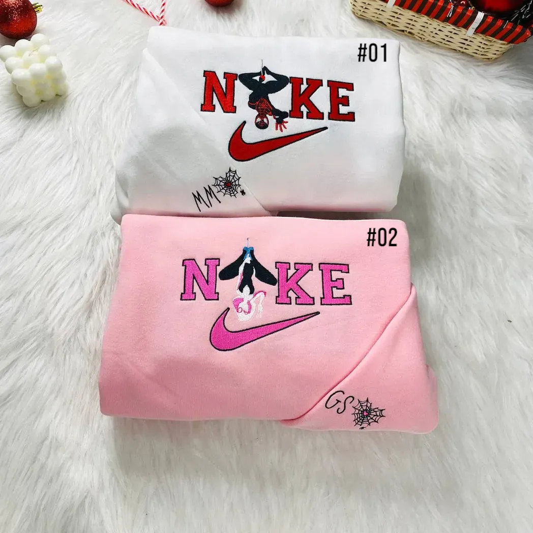 Spiderman And Gwen Stacy x Nike Embroidered Shirt, Embroidered Sweatshirt Fashion Style For Couples