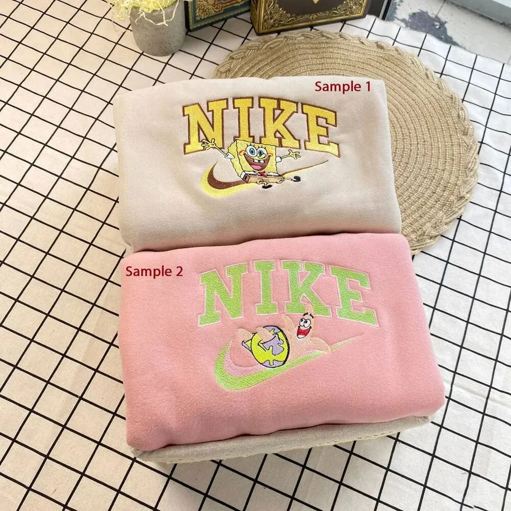 Spongbob And Patrick x Nike Embroidered Shirt, Embroidered Sweatshirt Fashion Style For Couples