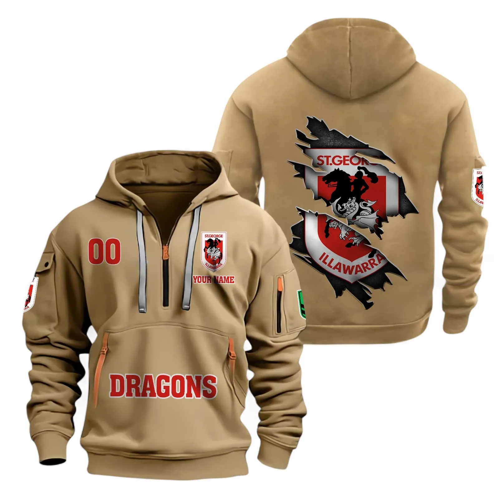 St George Illawarra Dragons Fans Gift Hoodie Half Zipper, All Over Print Hoodie Half Zipper For Sport Fan, Custom Name NRL170071525336-Khaki