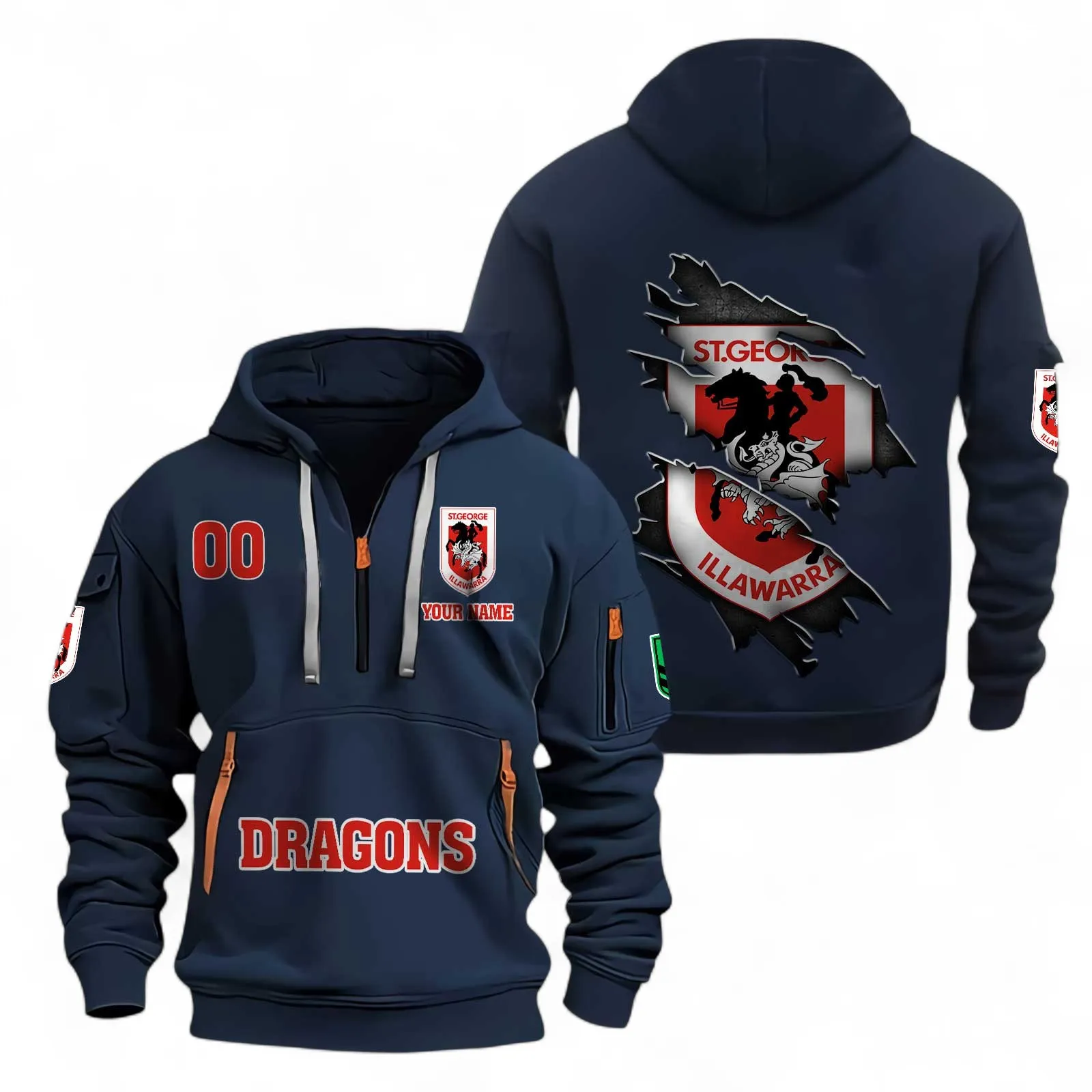 St George Illawarra Dragons Fans Gift Hoodie Half Zipper, All Over Print Hoodie Half Zipper For Sport Fan, Custom Name NRL170071525336-Navy