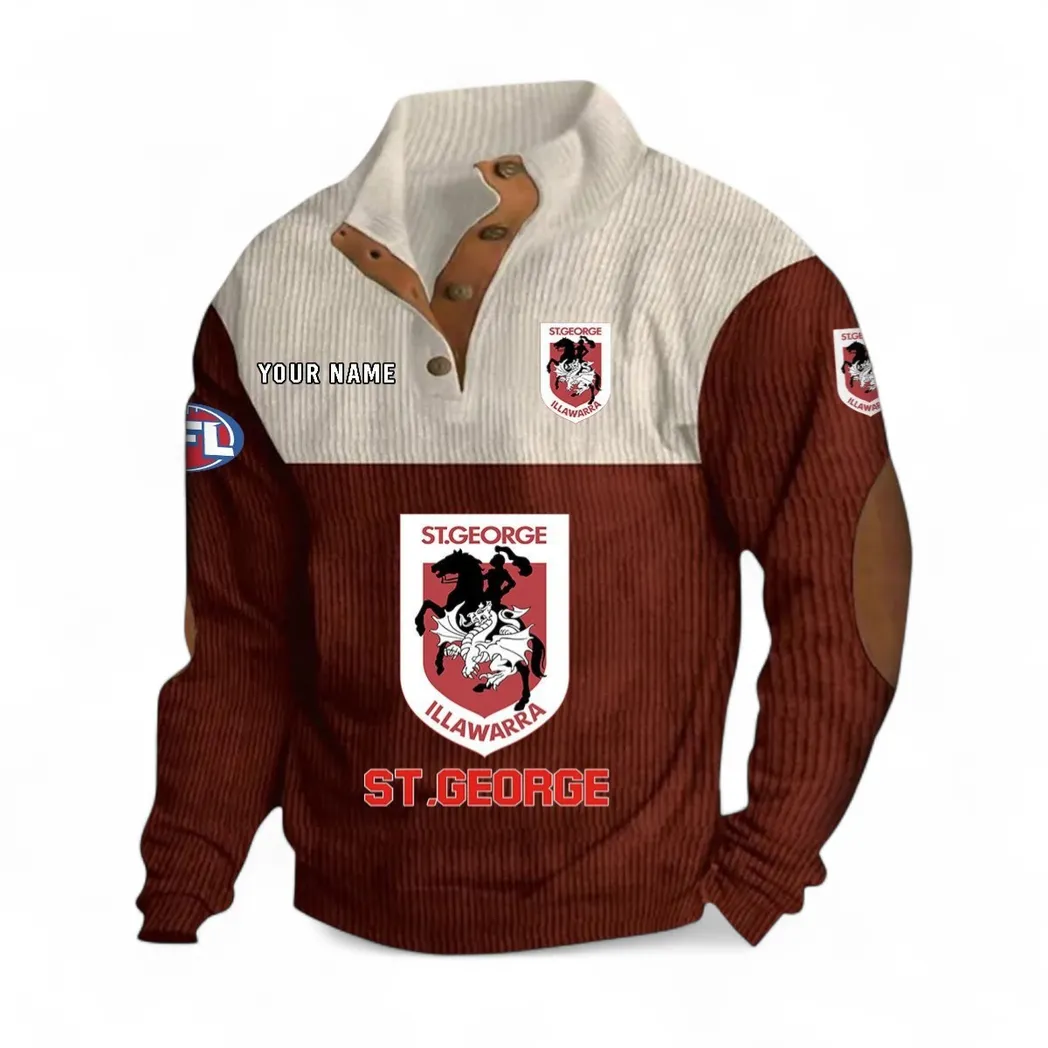 Custom St. George Illawarra Dragons Stand-Up Collar Hoodie – Fan-First Style, Cold-Weather Ready