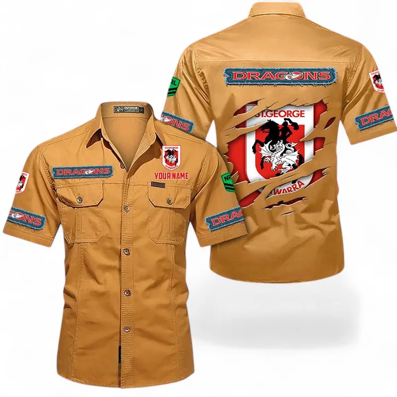 St George Illawarra Dragons Fans Gift Short Sleeved Shirt, All Over Print Short Sleeved Shirt For Sport Fan, Custom Name NRL172071625336-Khaki