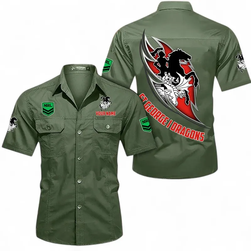 St George Illawarra Dragons Fans Gift Short Sleeved Shirt, All Over Print Short Sleeved Shirt For Sport Fan, Custom Name NRL173071625011-Army Green