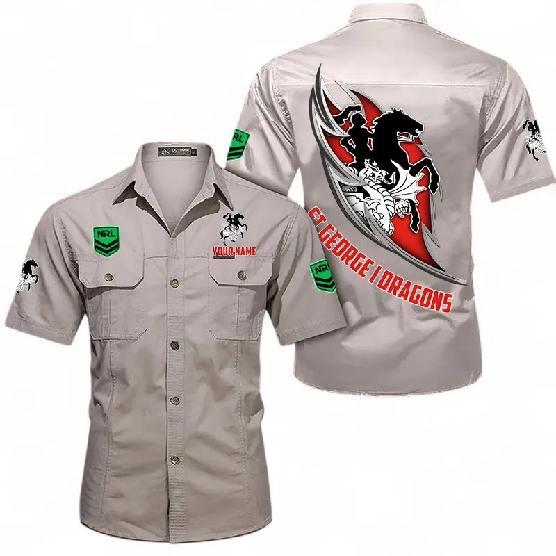 St George Illawarra Dragons Fans Gift Short Sleeved Shirt, All Over Print Short Sleeved Shirt For Sport Fan, Custom Name NRL173071625011-Khaki
